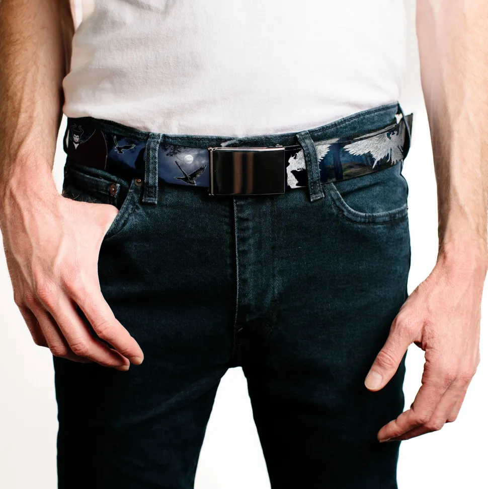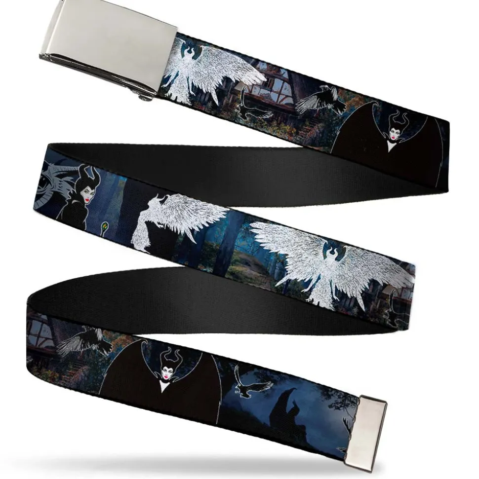Chrome Buckle Web Belt – Maleficent/Maleficent Dragon/Diaval Forest Poses Webbing