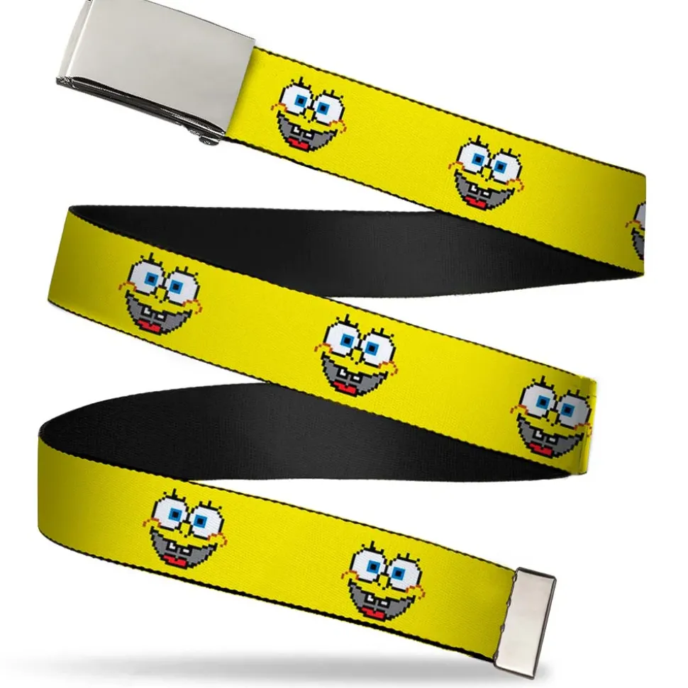 Chrome Buckle Web Belt – SpongeBob 8-Bit Smile Yellow Webbing