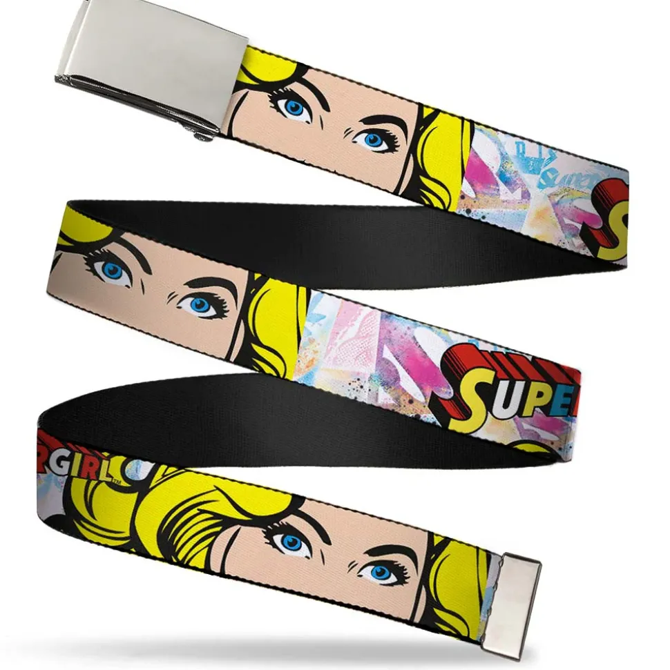 Chrome Buckle Web Belt – SUPERGIRL w/Face CLOSE-UP Webbing
