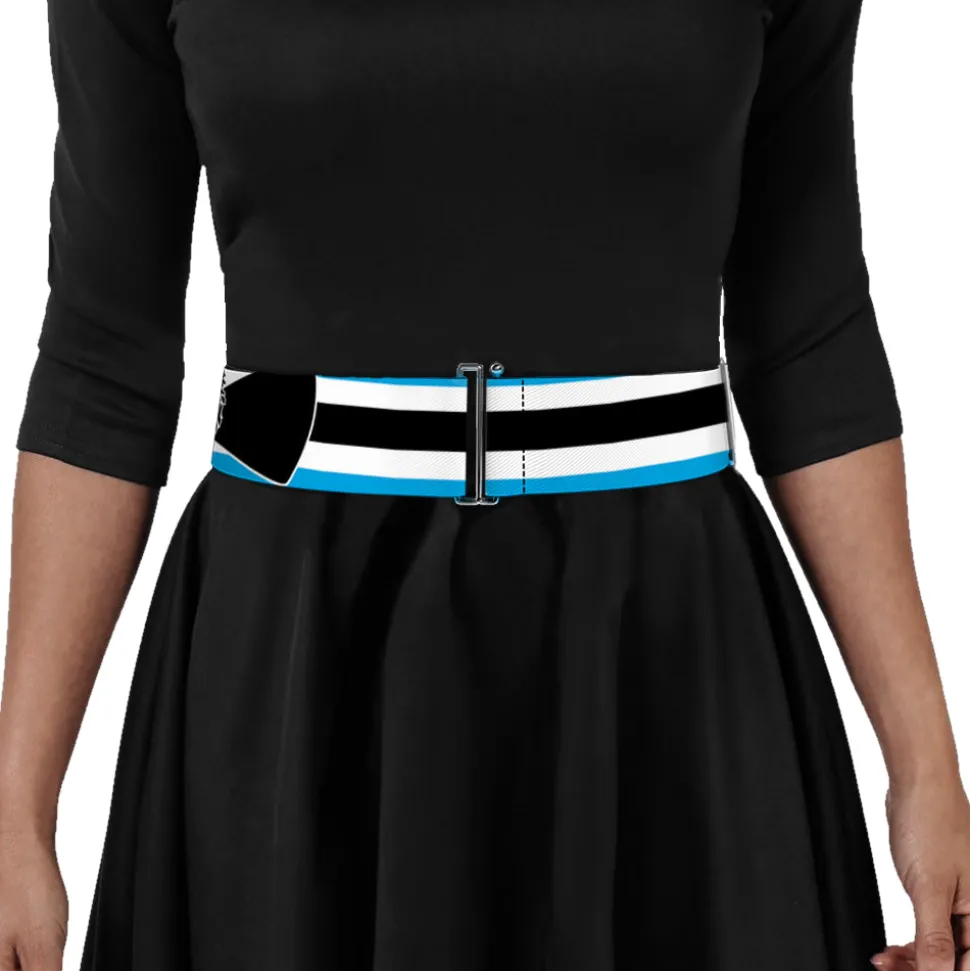 Cinch Waist Belt – Alice in Wonderland Stripe Bow Silhouette Blue Black White