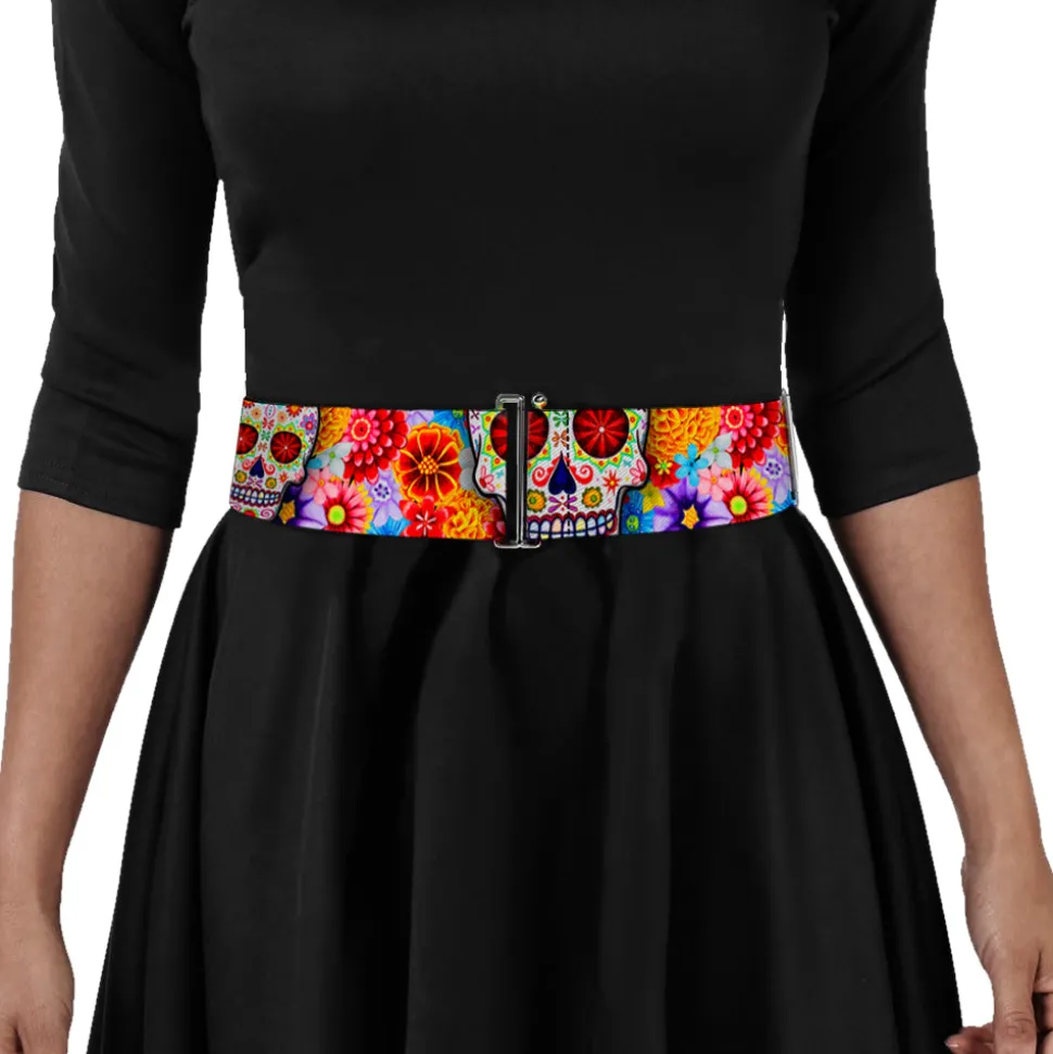 Cinch Waist Belt – Sugar Skull Starburst White Multi Color