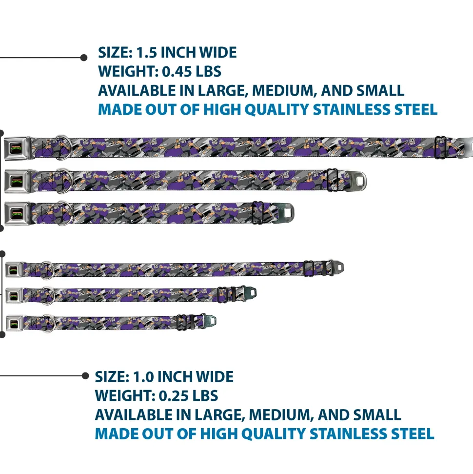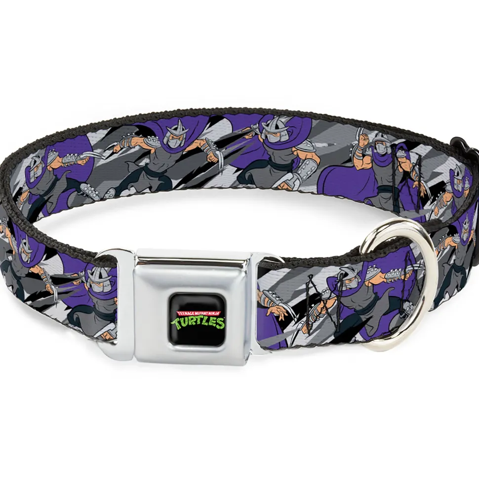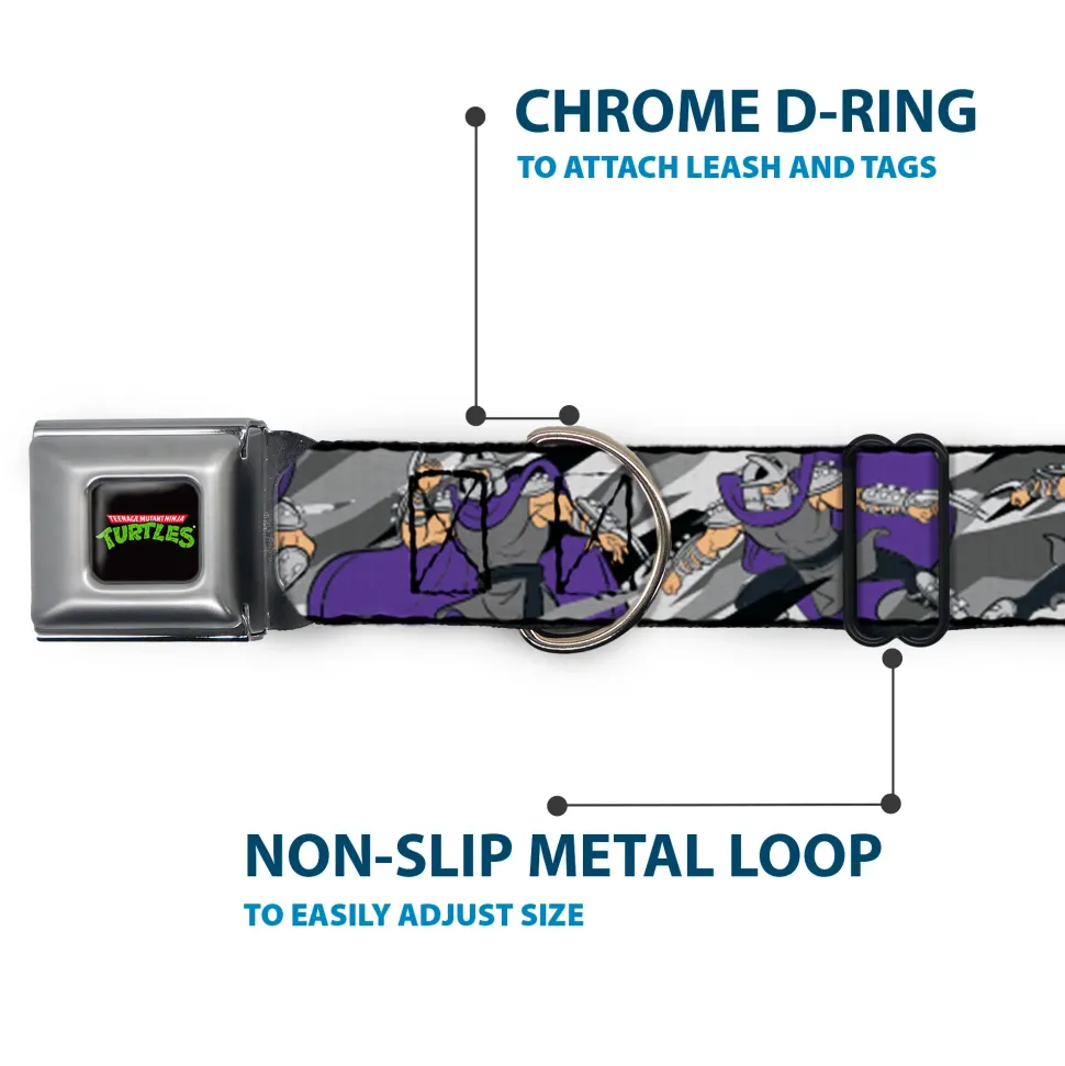 Classic TEENAGE MUTANT NINJA TURTLES Logo Seatbelt Buckle Collar – Teenage Mutant Ninja Turtles Shredder Action Poses Grays/Purple