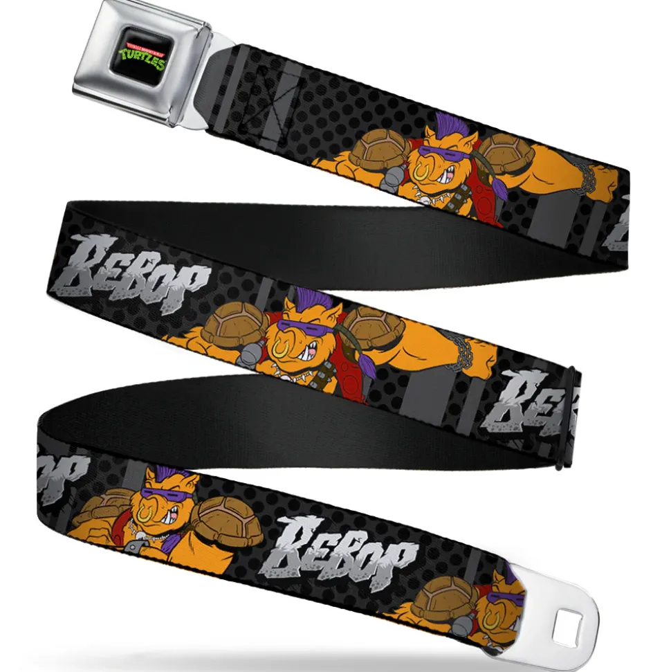 Classic TMNT Logo Full Color Seatbelt Belt – BEBOP 2-Poses Stripes/Dots Black/Grays Webbing