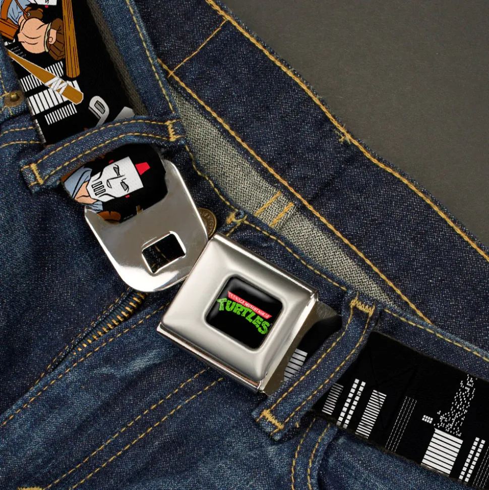 Classic TMNT Logo Full Color Seatbelt Belt – Casey Jones Action Poses/Skyline Black/White Webbing