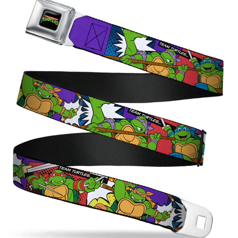 Classic TMNT Logo Full Color Seatbelt Belt – Classic Teenage Mutant Ninja Turtles Action Poses/TEAM TURTLES Webbing