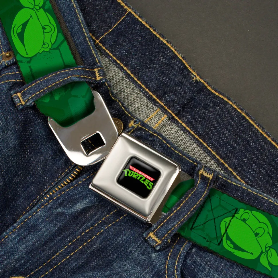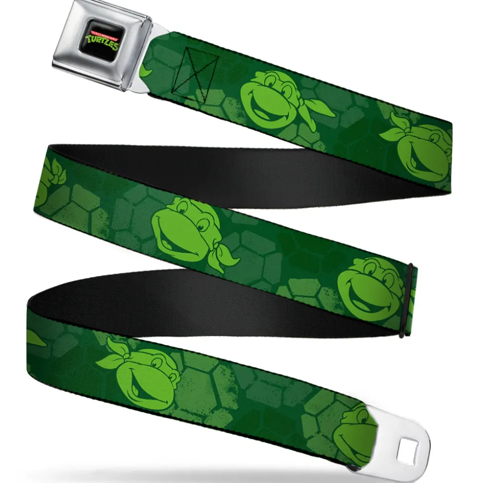 Classic TMNT Logo Full Color Seatbelt Belt – Classic Teenage Mutant Ninja Turtles Turtle Faces2 Greens Webbing