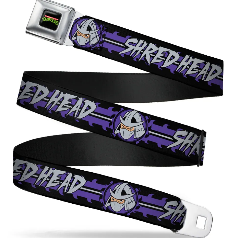 Classic TMNT Logo Full Color Seatbelt Belt – Shredder Head SHRED HEAD/Stripe Black/Purple/Gray Webbing