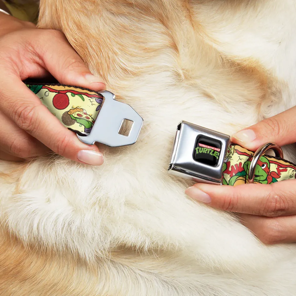 Your dog will be the talk of the town when people notice they’re wearing this awesome SeatBelt Dog Collar! Made from high-density polyester and durable steel components, this collar is built to last. It features beautiful vibrant artwork. The buckle is a miniature authentic SeatBelt Buckle, so you press the center button to release the clasp. This product is Made in USA by Buckle-Down Inc. and officially licensed by Nickelodeon.