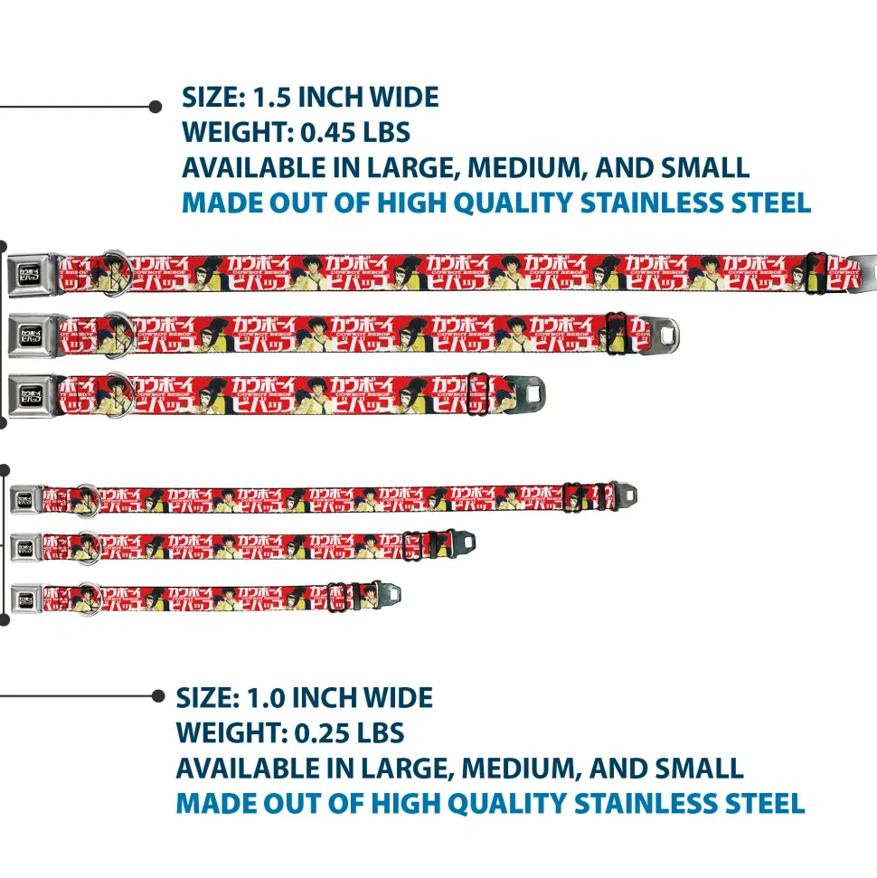 COWBOY BEBOP Title Logo Full Color Black/White Seatbelt Buckle Collar – COWBOY BEBOP Spike and Faye Back to Back Pose and Title Logo Red/White