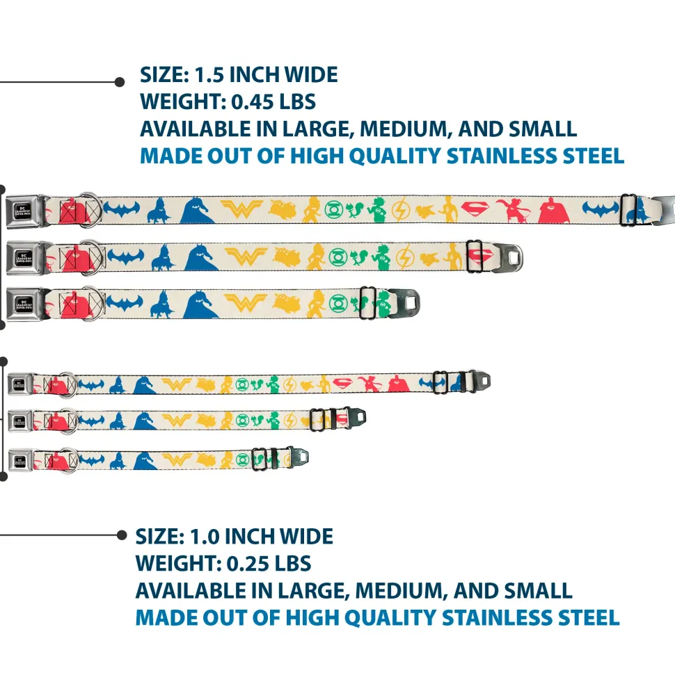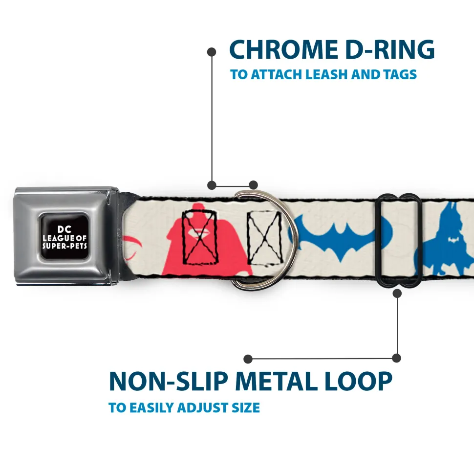DC LEAGUE OF SUPER-PETS Logo Full Color Black/White Seatbelt Buckle Collar – DC League of Super-Pets Superhero with Pets and Logos Silhouette White/Multi Color