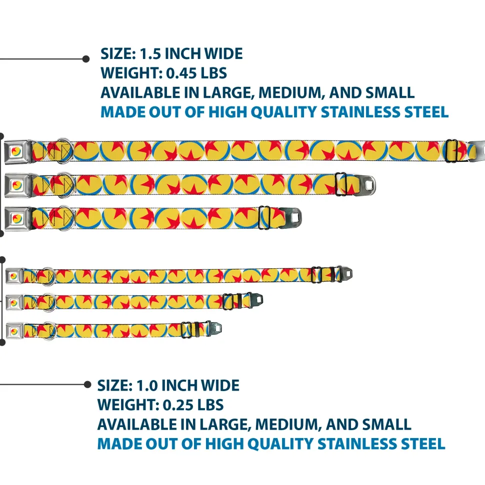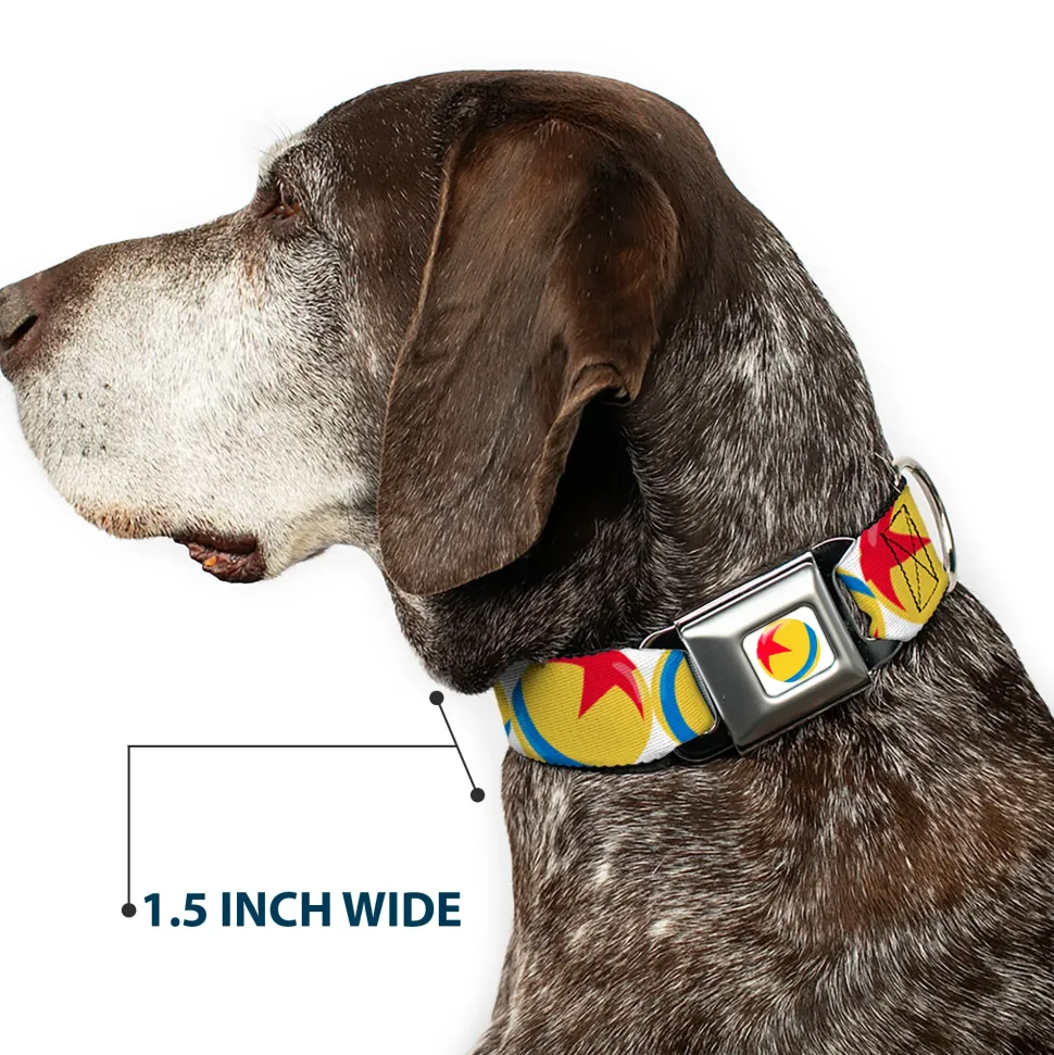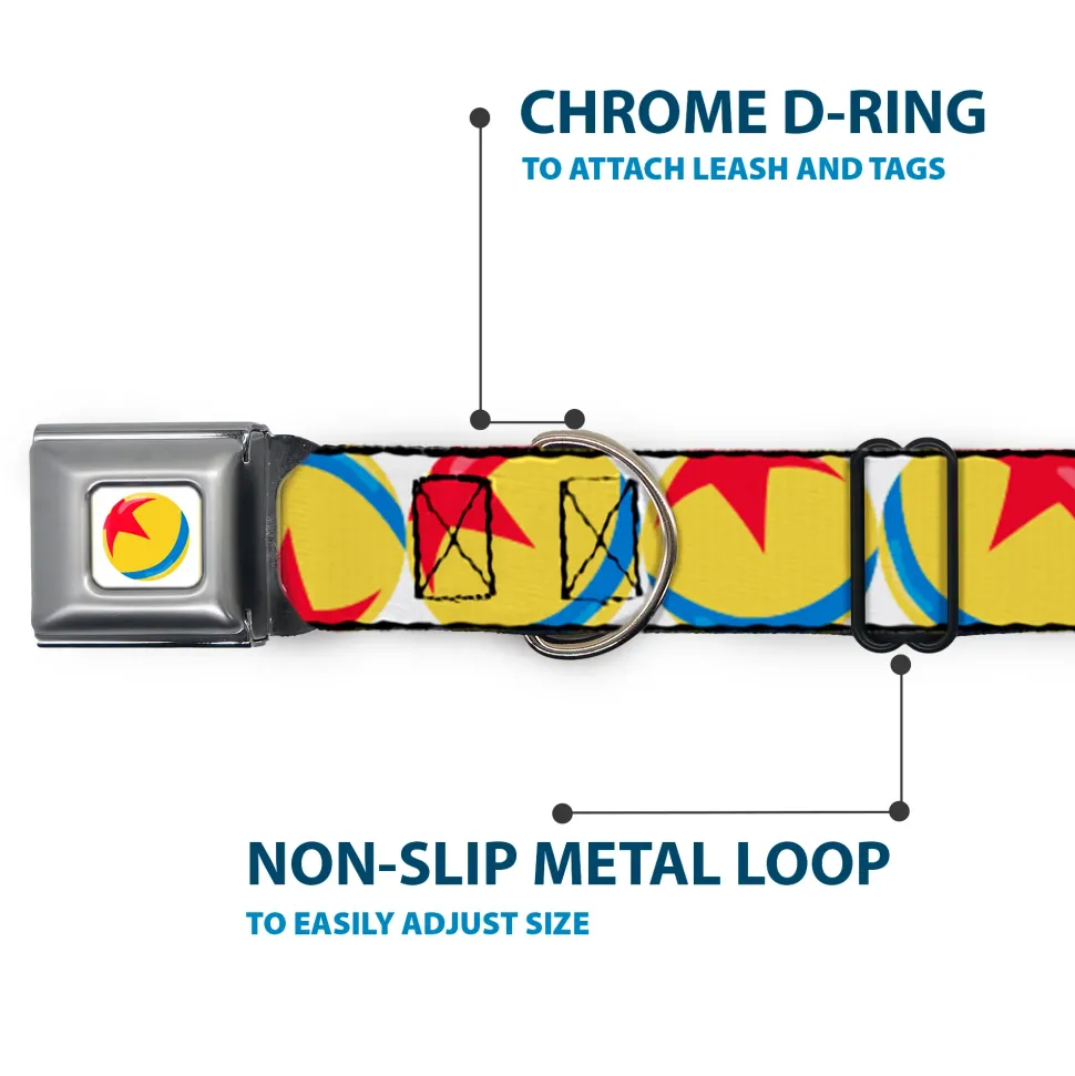 Disney Pixar Luxo Ball Full Color White/Yellow/Blue/Red Seatbelt Buckle Collar – Disney Pixar Luxo Ball Repeat White/Yellow/Blue/Red