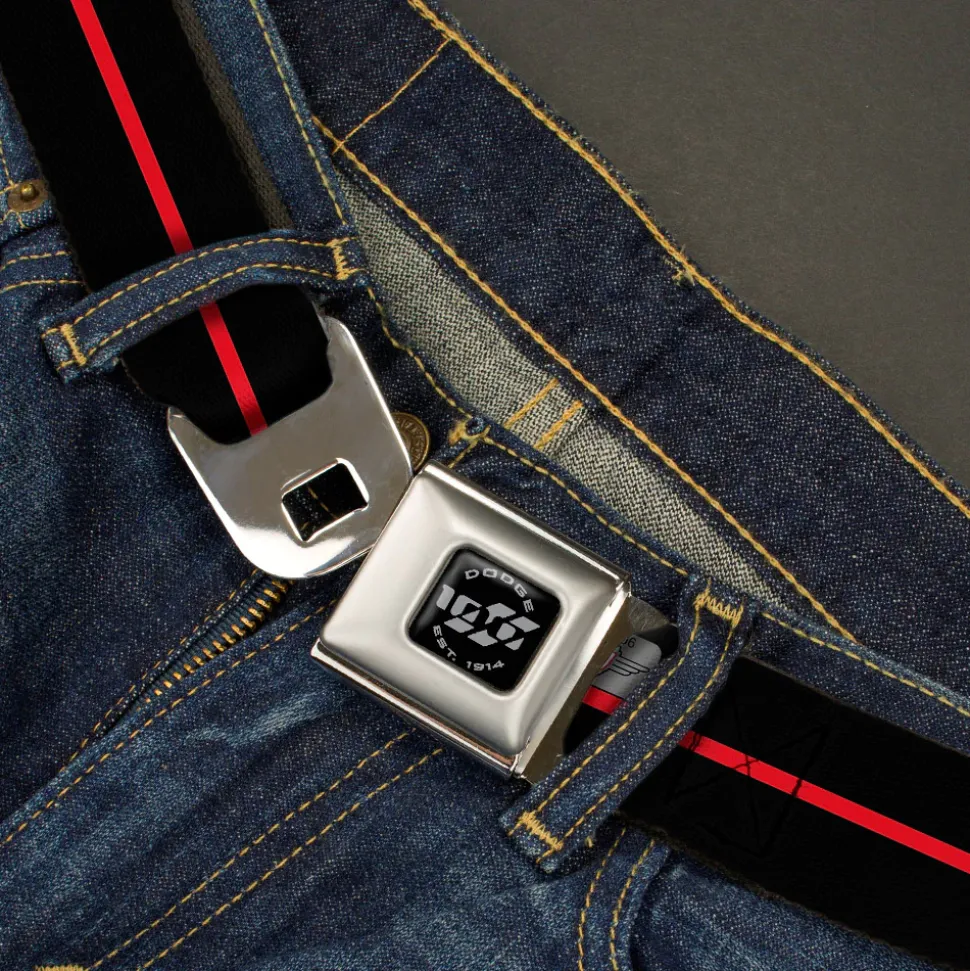 - The design of the Buckle-Down Seatbelt Belt is protected by US Trademark Registration Number 5472519. This product is Officially Licensed by Dodge.