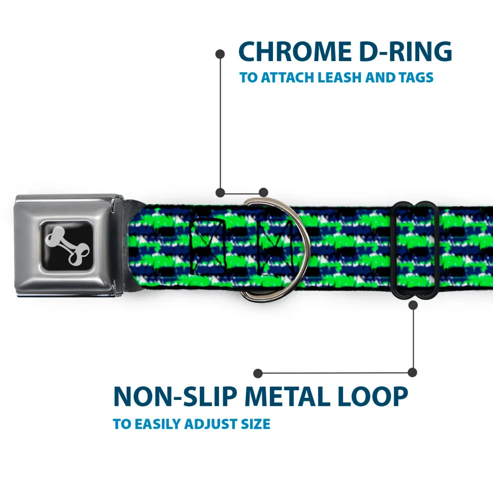 Dog Bone Black/Silver Seatbelt Buckle Collar – Abstract Scribble Black/Blue/Neon Green