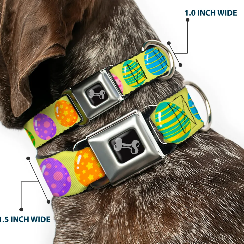 Dog Bone Black/Silver Seatbelt Buckle Collar – Easter Eggs Decorated Eggs Yellow/Multi Color