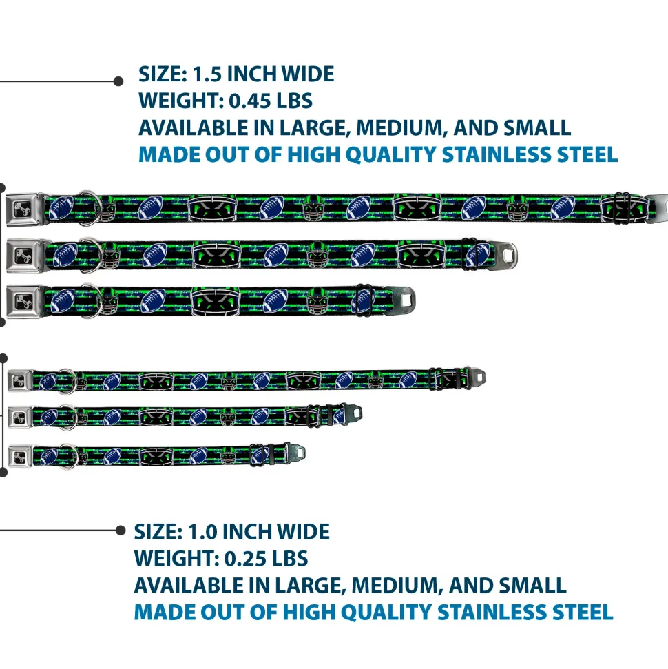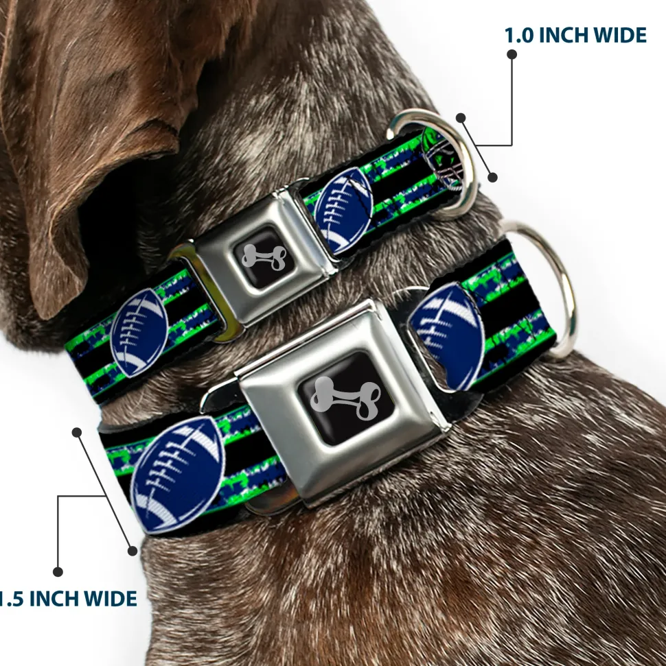 Dog Bone Black/Silver Seatbelt Buckle Collar – Football/Helmet Stripe Black/Neon Green/Blue