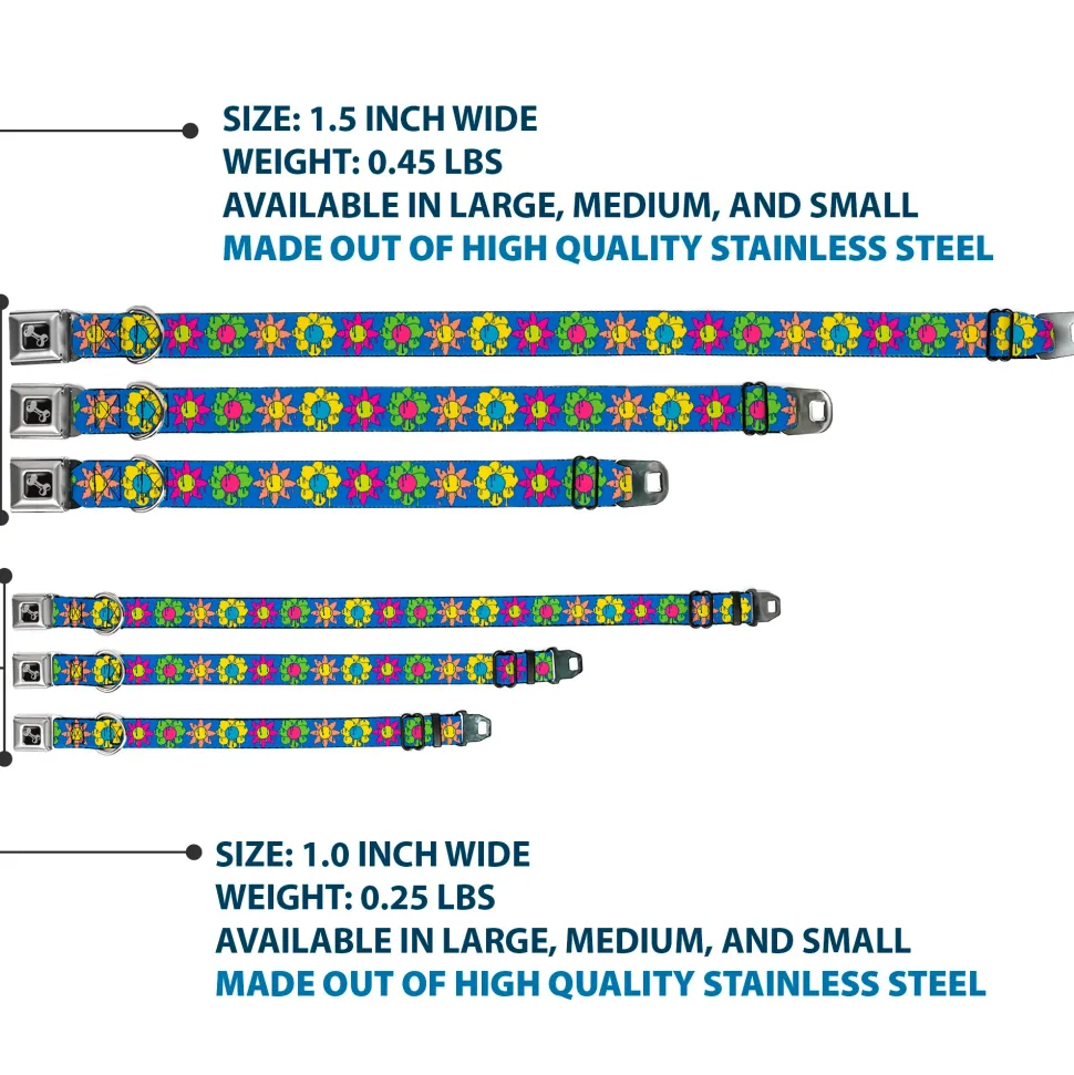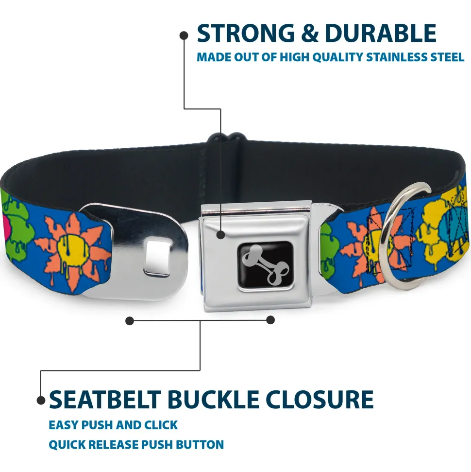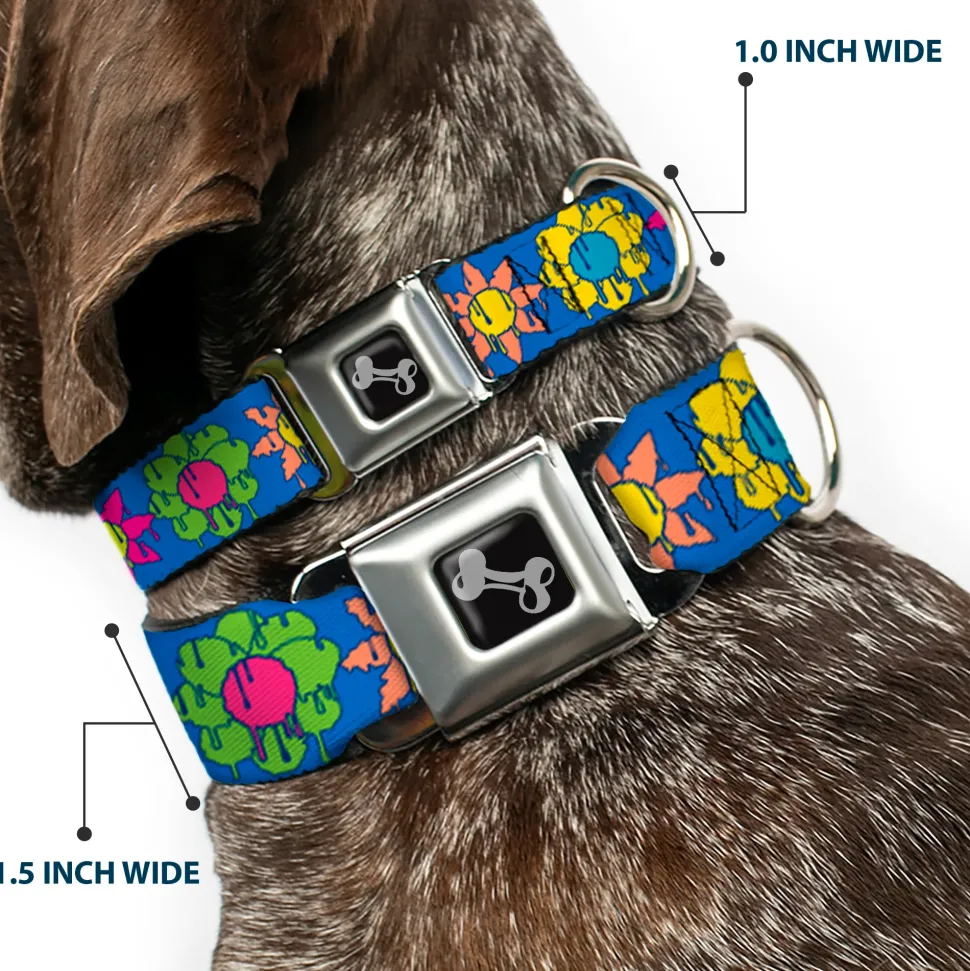 Dog Bone Black/Silver Seatbelt Buckle Collar – Funky Flower Drip Blue/Multi Color