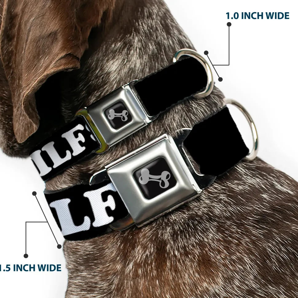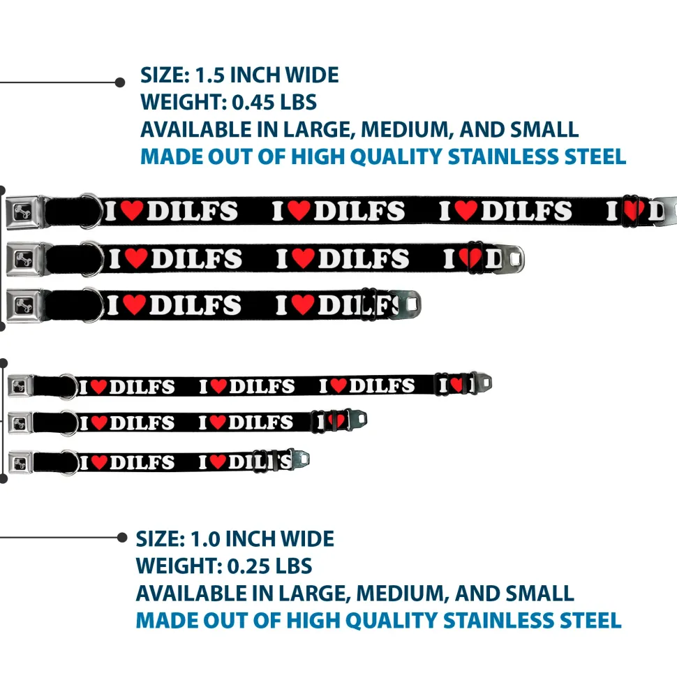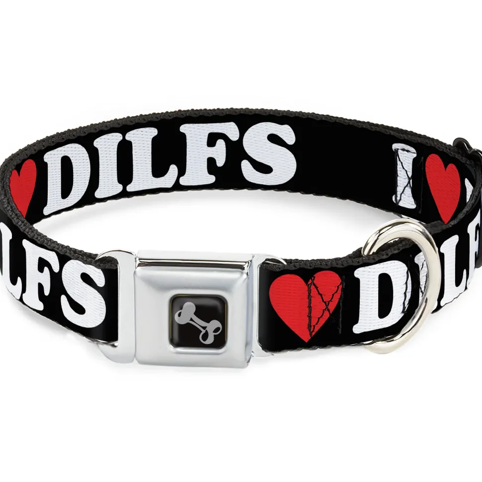 Dog Bone Black/Silver Seatbelt Buckle Collar – I "HEART" DILFS Black/White/Red