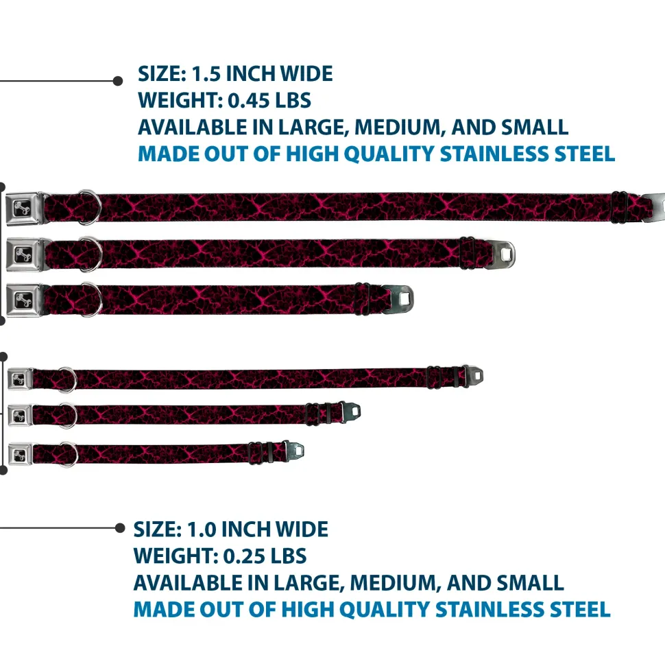 Dog Bone Black/Silver Seatbelt Buckle Collar – Marble Black/Hot Pink