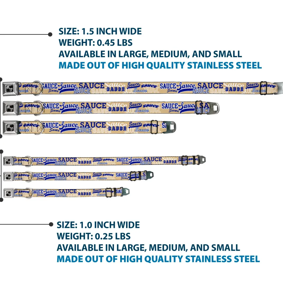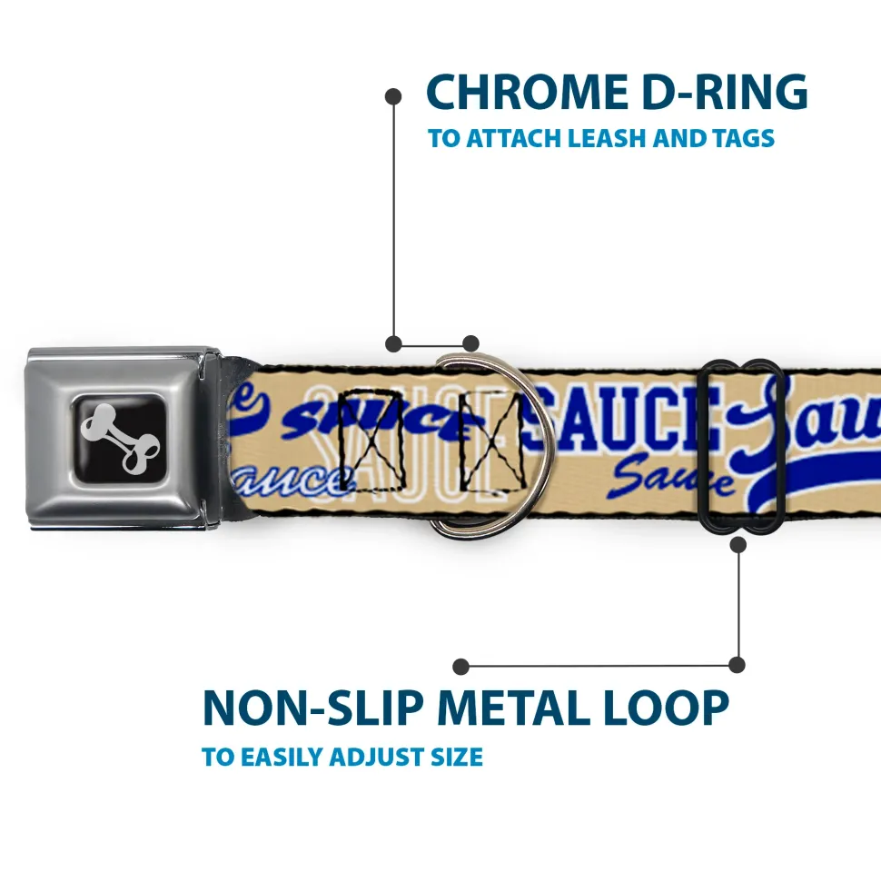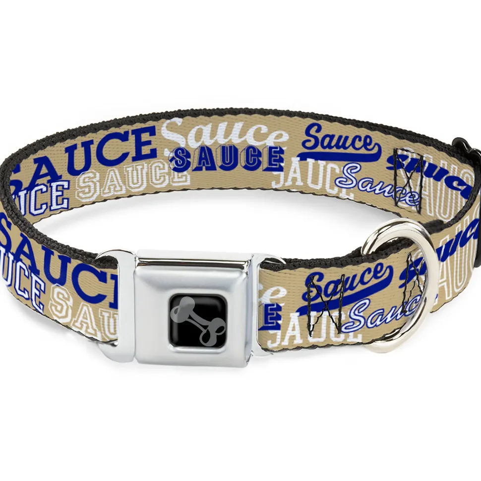 Dog Bone Black/Silver Seatbelt Buckle Collar – SAUCE Typography Collage Tan/White/Blue