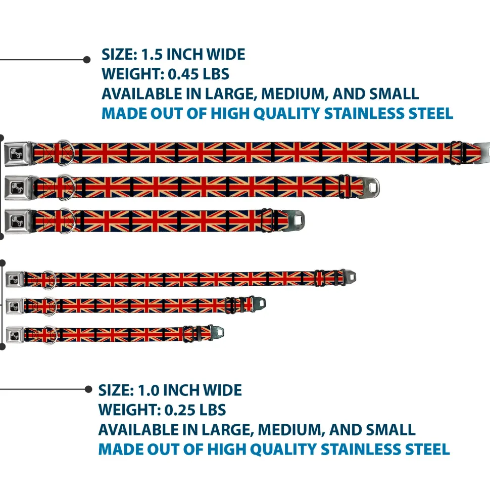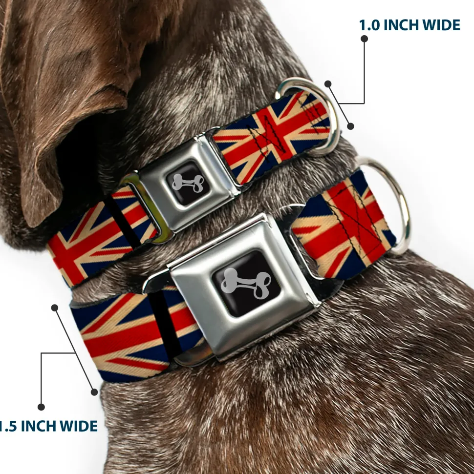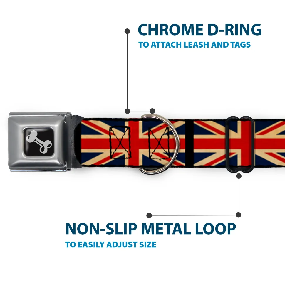 Dog Bone Black/Silver Seatbelt Buckle Collar – United Kingdom Flags Vintage Black
