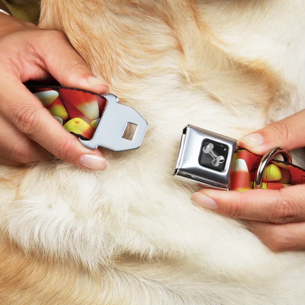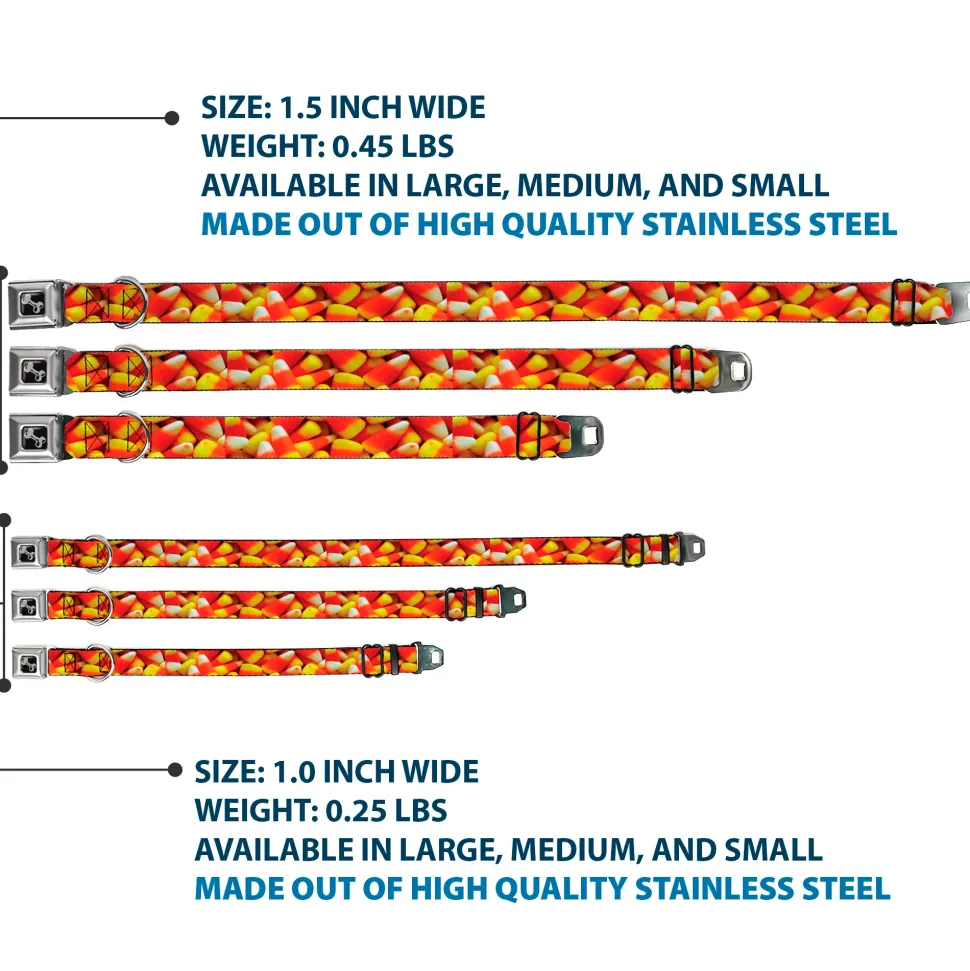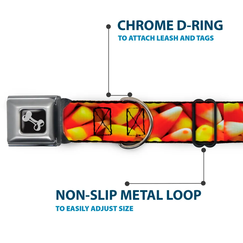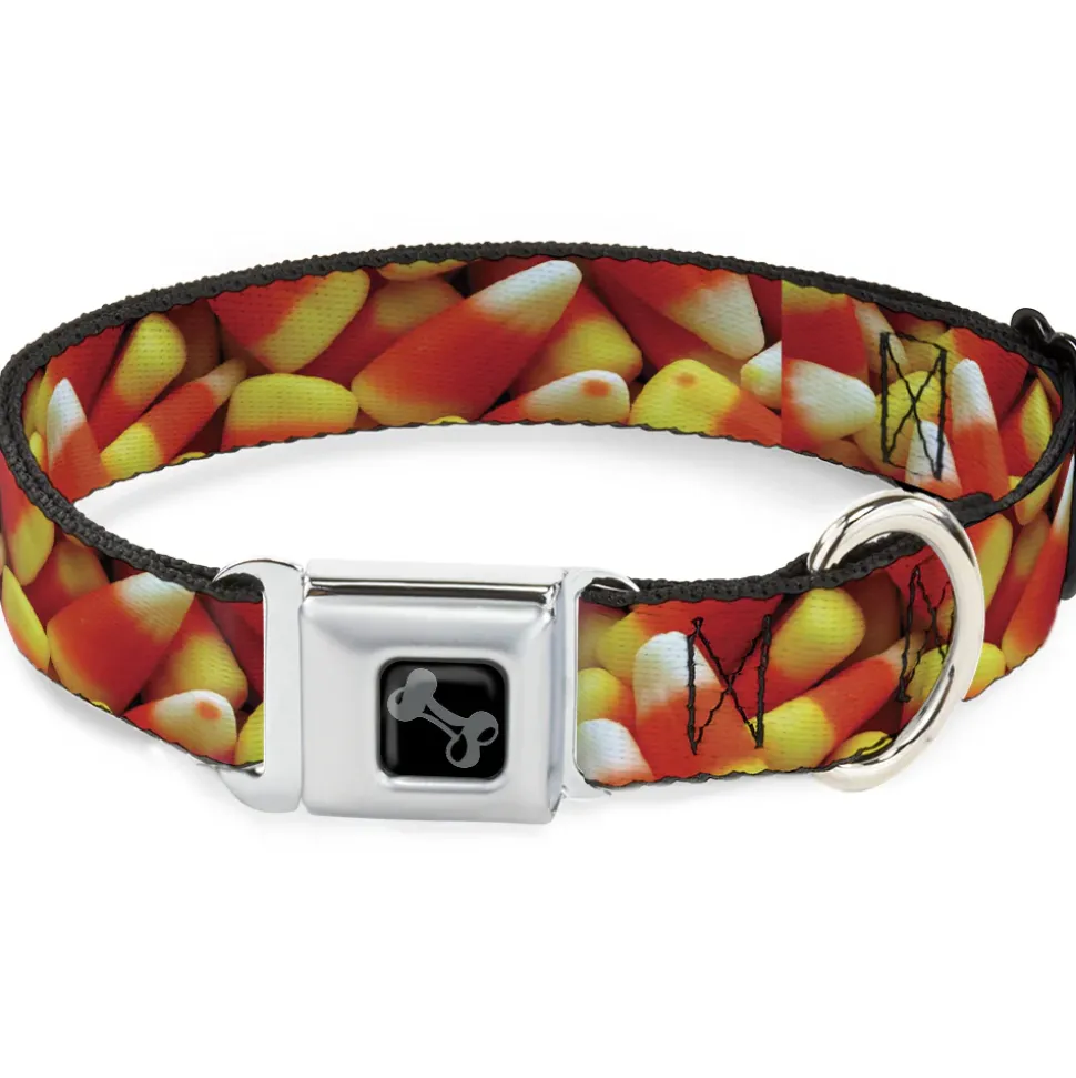 Dog Bone Black/Silver Seatbelt Buckle Collar – Vivid Candy Corn Stacked