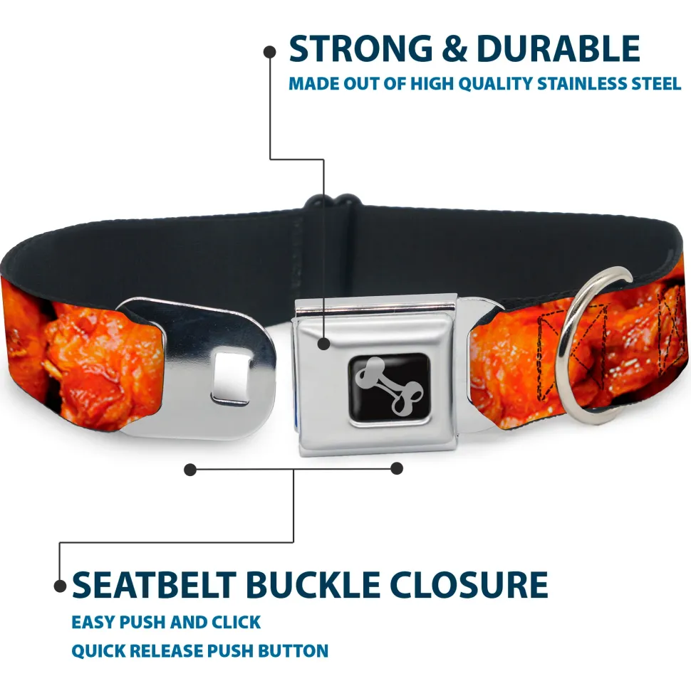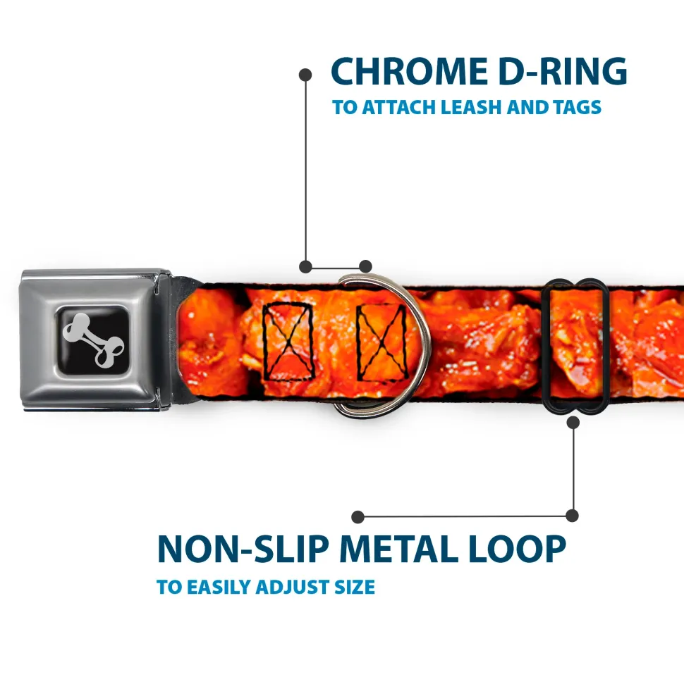 Dog Bone Black/Silver Seatbelt Buckle Collar – Vivid Hot Wings Stacked