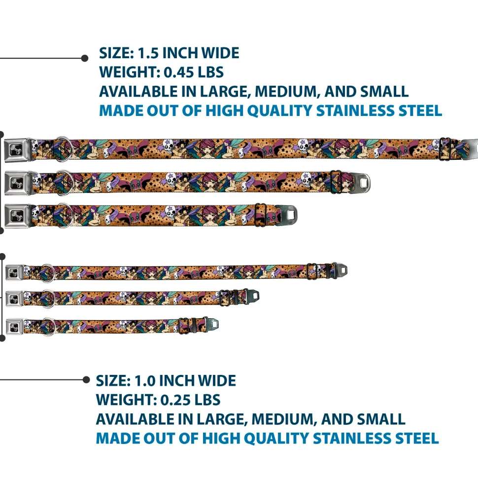 Your dog will be the talk of the town when people notice they’re wearing this awesome SeatBelt Dog Collar! Made from high-density polyester and durable steel components, this collar is built to last. It features beautiful vibrant artwork. The buckle is a miniature authentic SeatBelt Buckle, so you press the center button to release the clasp. This product is Made in USA by Buckle-Down Inc. and officially Licensed by Tattoo Johnny.