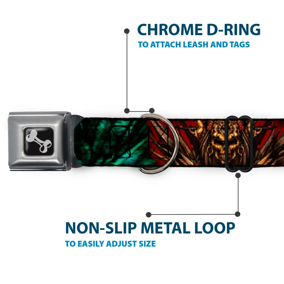 Your dog will be the talk of the town when people notice they’re wearing this awesome SeatBelt Dog Collar! Made from high-density polyester and durable steel components, this collar is built to last. It features beautiful vibrant artwork. The buckle is a miniature authentic SeatBelt Buckle, so you press the center button to release the clasp. This product is Made in USA by Buckle-Down Inc. and officially Licensed by Tattoo Johnny.