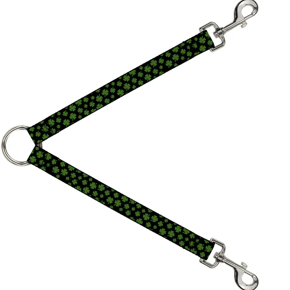 Dog Leash Splitter – St. Pat's Clovers Scattered Black/Green