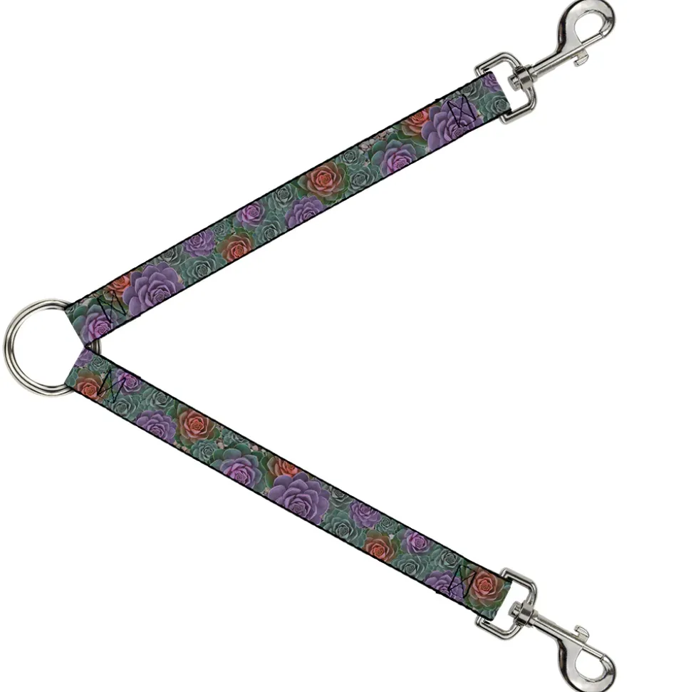 Dog Leash Splitter - Succulents Stacked Green/Pink/Orange