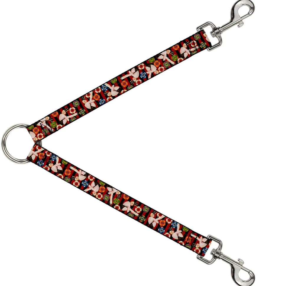 Dog Leash Splitter – Top Hat Pin Up Girl/Poker Chips Vertical Stripes Red/Black