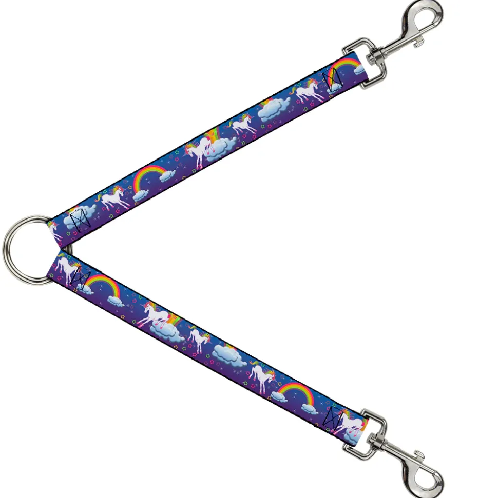 Dog Leash Splitter – Unicorns/Rainbows/Stars Blue/Purple