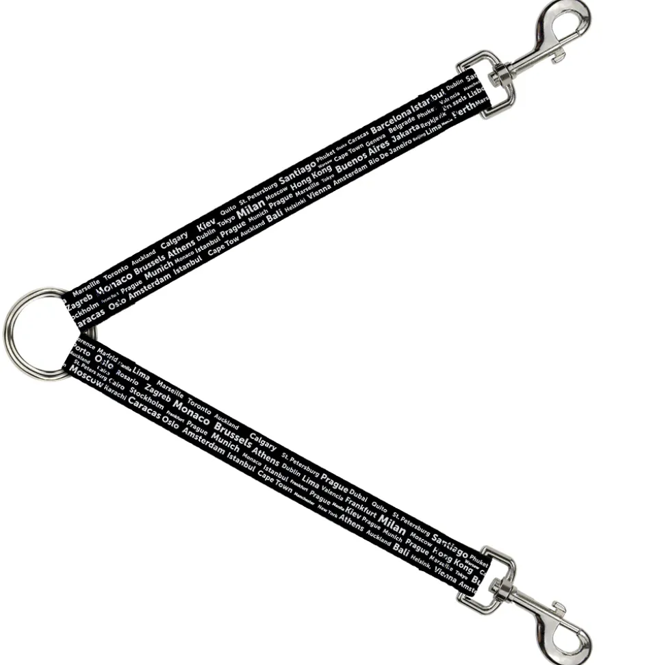 Dog Leash Splitter - Verbiage Destination Cities Black/White