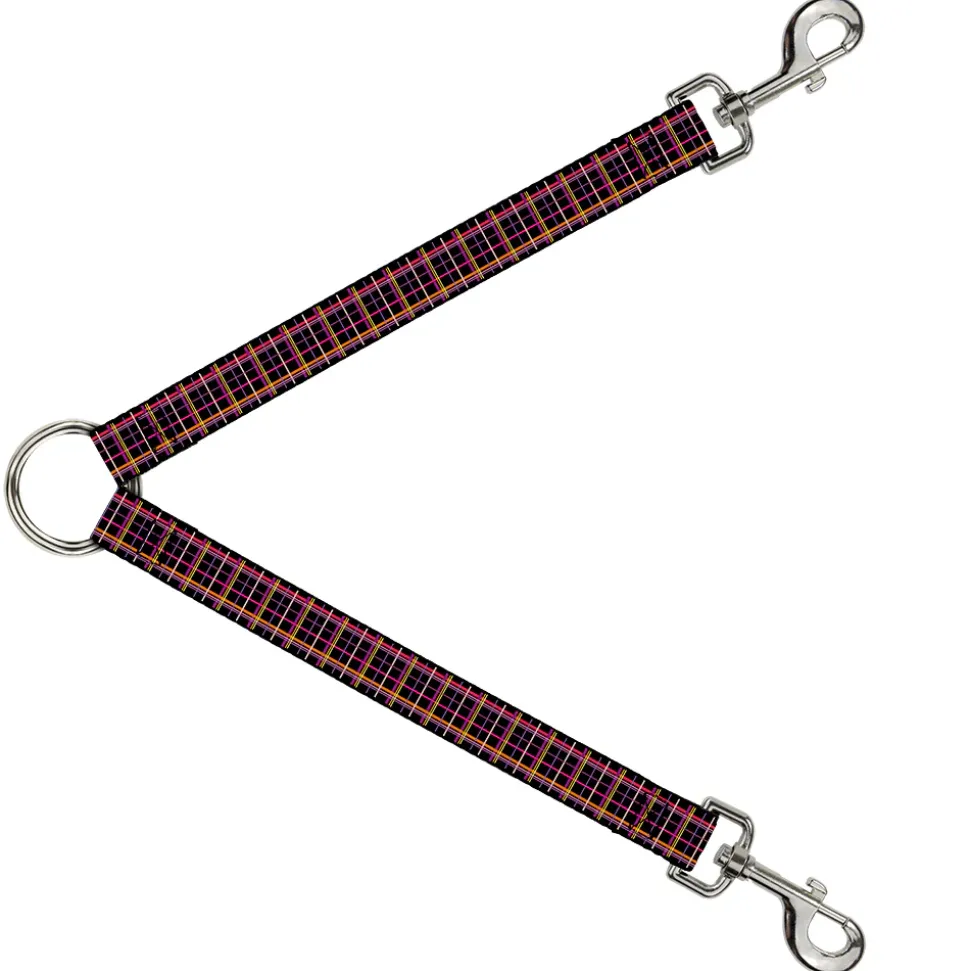 Dog Leash Splitter - Wire Grid Black/Orange/Purple