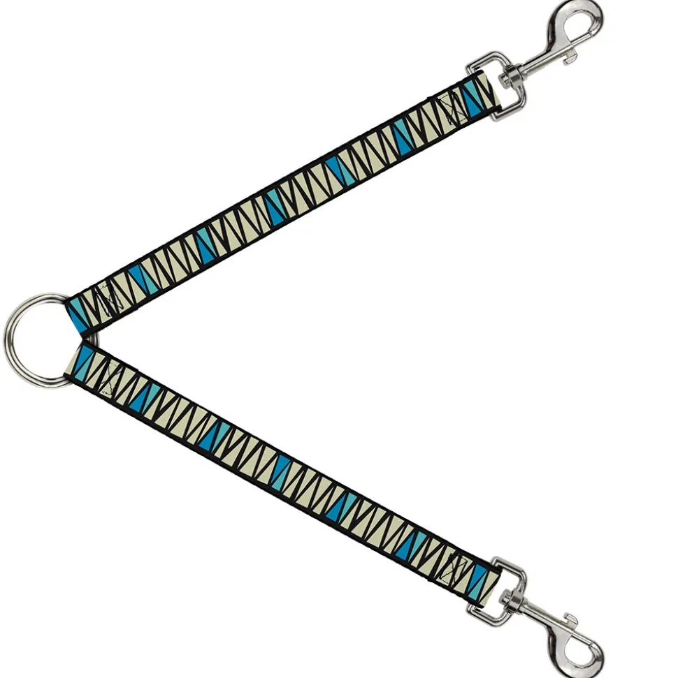 Dog Leash Splitter - Zig Zag Doodle Black/Cream/Blues