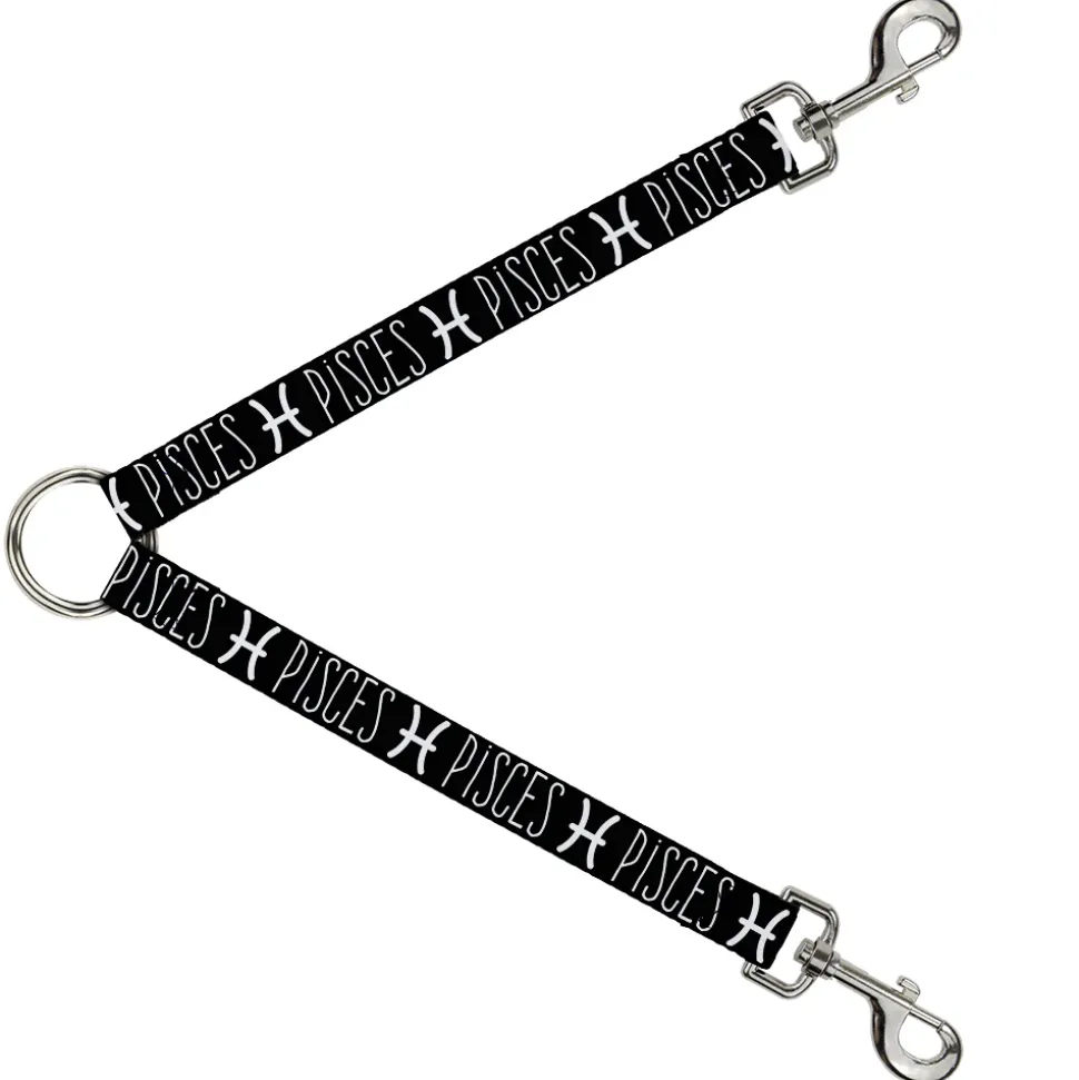 Dog Leash Splitter - Zodiac PISCES/Symbol Black/White
