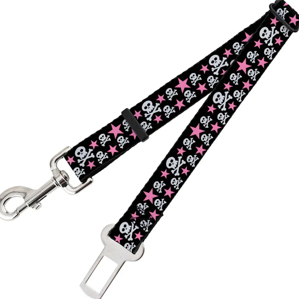 Dog Safety Seatbelt for Cars – Skulls & Stars Black/White/Pink
