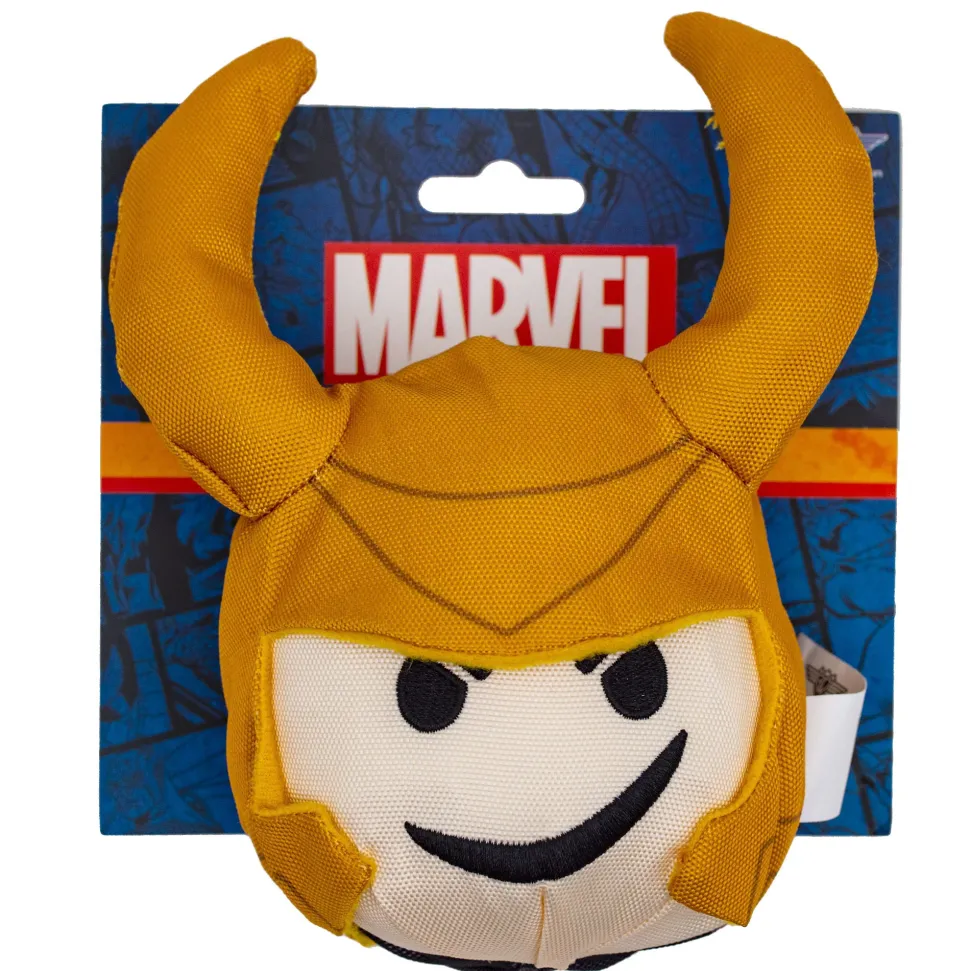 Bring some mischief and fun to playtime with the Marvel Comics Dog Toy featuring Loki’s smirking face! This round plush toy is perfect for your furry friend to snuggle up with or play tug-of-war. The toy measures 7 inches in diameter, making it perfect for dogs of all sizes. The squeaker inside the toy is sure to keep your pup entertained for hours, while the soft plush material provides a comfortable and safe play experience. Fans of Marvel Comics and the mischievous Loki should snag this toy up today.