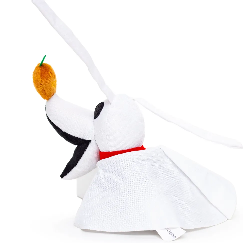 Bring a little bit of Halloween magic into playtime with the Disney Dog Toy, The Nightmare Before Christmas Zero Pose Pet Toy. This 6-inch plush toy is made from durable ballistic nylon that can withstand even the toughest chewers, ensuring hours of fun and entertainment for your furry friend. Featuring Zero, the lovable ghost dog from the classic Tim Burton film, this toy is bound to become a favorite for both you and your pup. The ball-shaped design of the toy is perfect for tossing and playing catch.