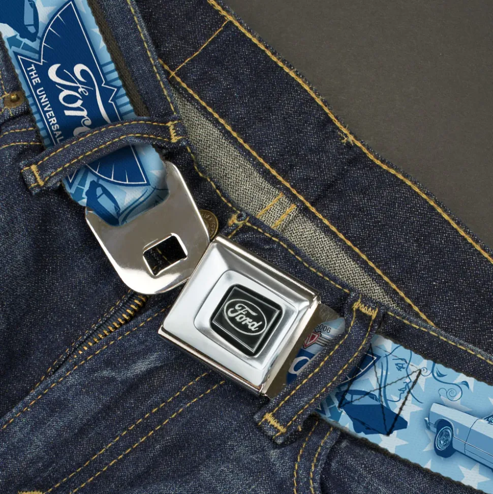 Ford Emblem Seatbelt Belt – Vintage Ford Logo/1967 Galaxie 500/Stars Blues Webbing