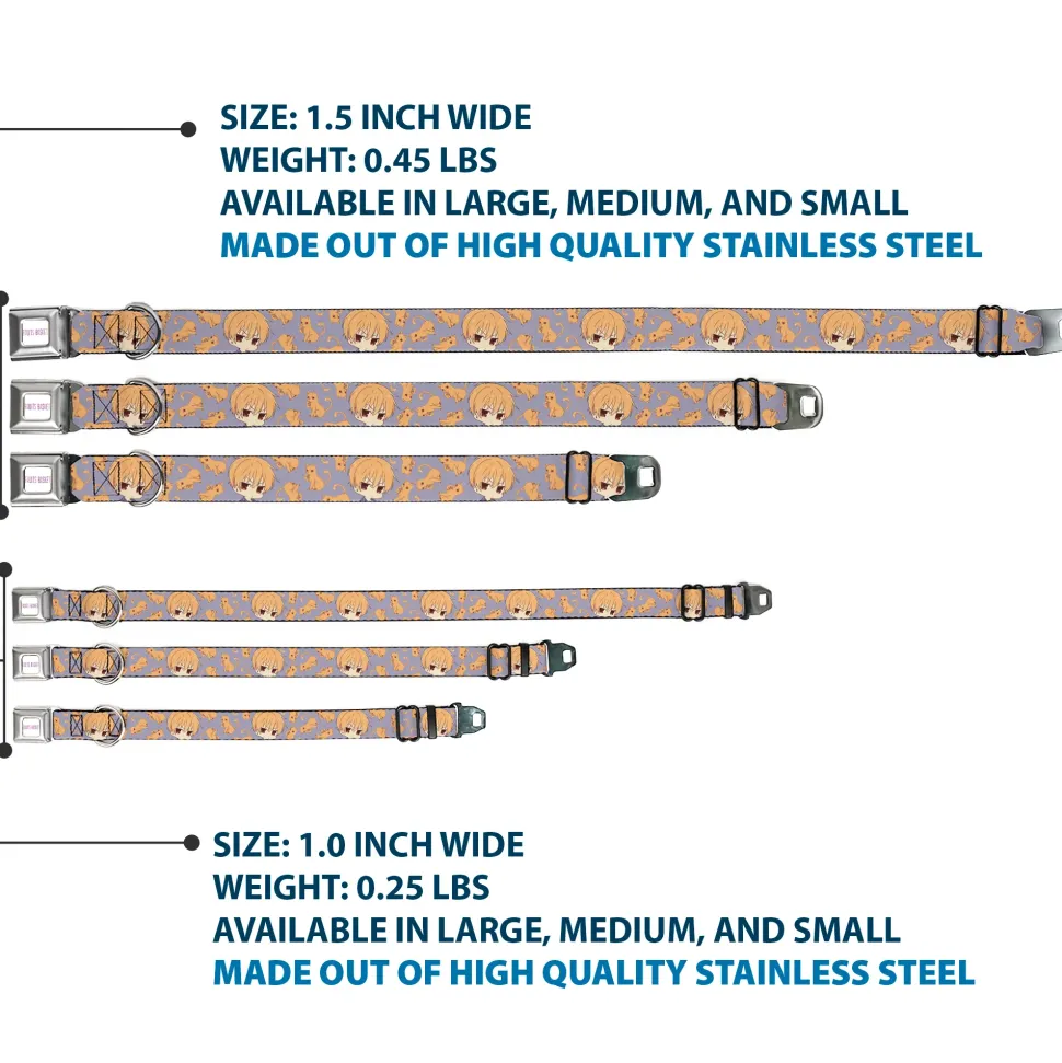 FRUITS BASKET Title Logo Full Color White/Purple Seatbelt Buckle Collar – Fruits Basket Chibi Kyo Soma and Cat Scattered Blue/Orange