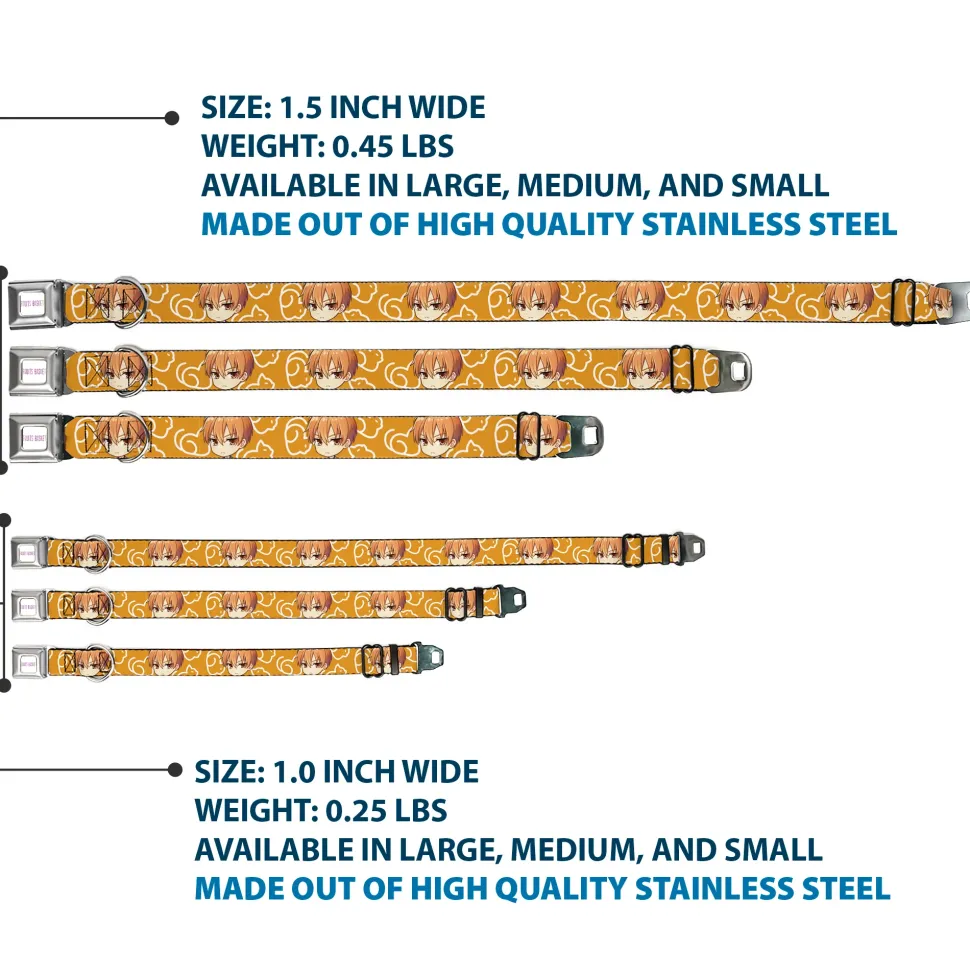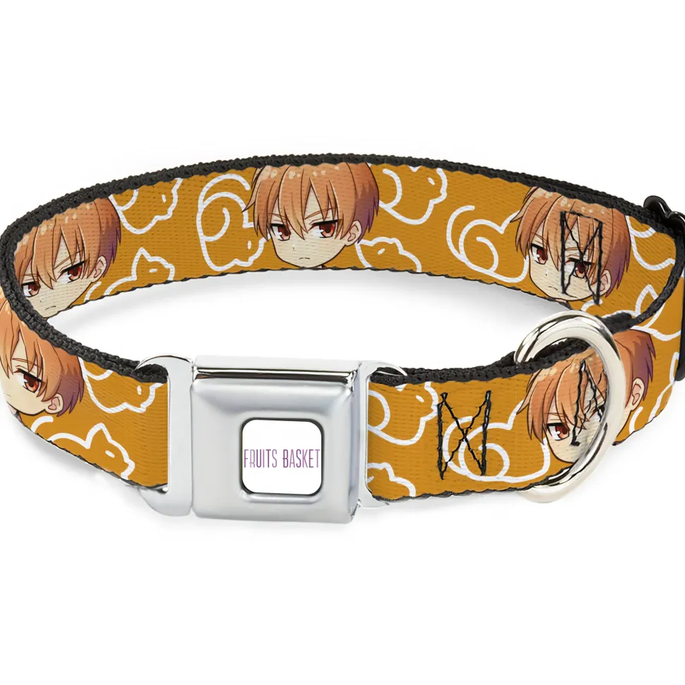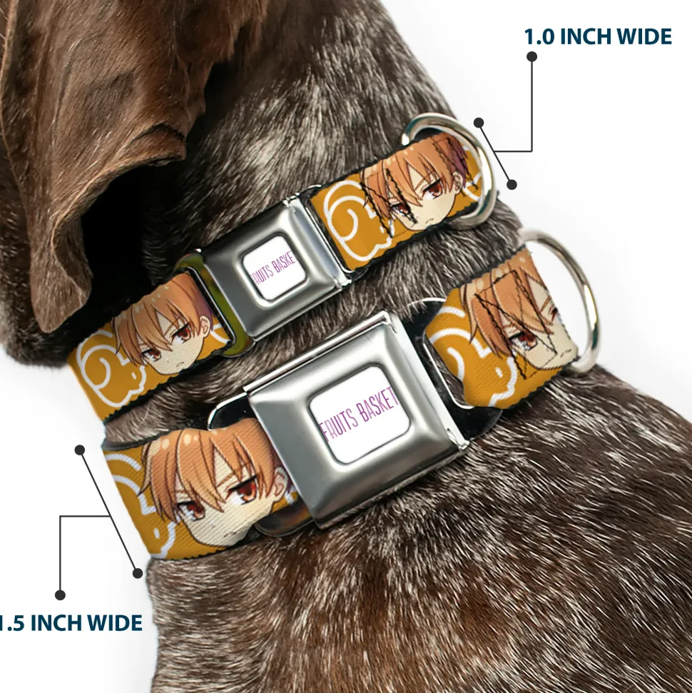 FRUITS BASKET Title Logo Full Color White/Purple Seatbelt Buckle Collar – Fruits Basket Chibi Kyo Soma Face and Kimono Cat Icon Orange/White