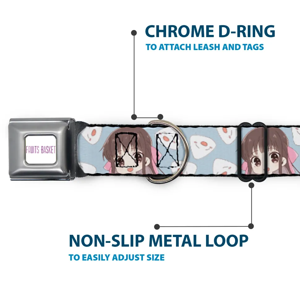 FRUITS BASKET Title Logo Full Color White/Purple Seatbelt Buckle Collar – Fruits Basket Chibi Tohru Honda and Rice Ball Scattered Light Blue