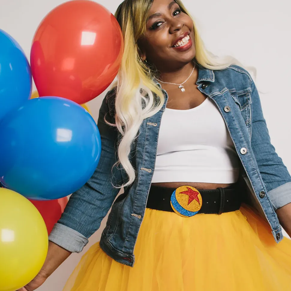 This awesome Disney logo belt is made from premium vegan leather and features an awesome sparkly Pixar Luxo Ball buckle. This belt is 2.75 inches wide and comes in five sizes: Extra-Small, Small, Medium, Large and Extra-Large. This product is Officially Licensed by Disney.