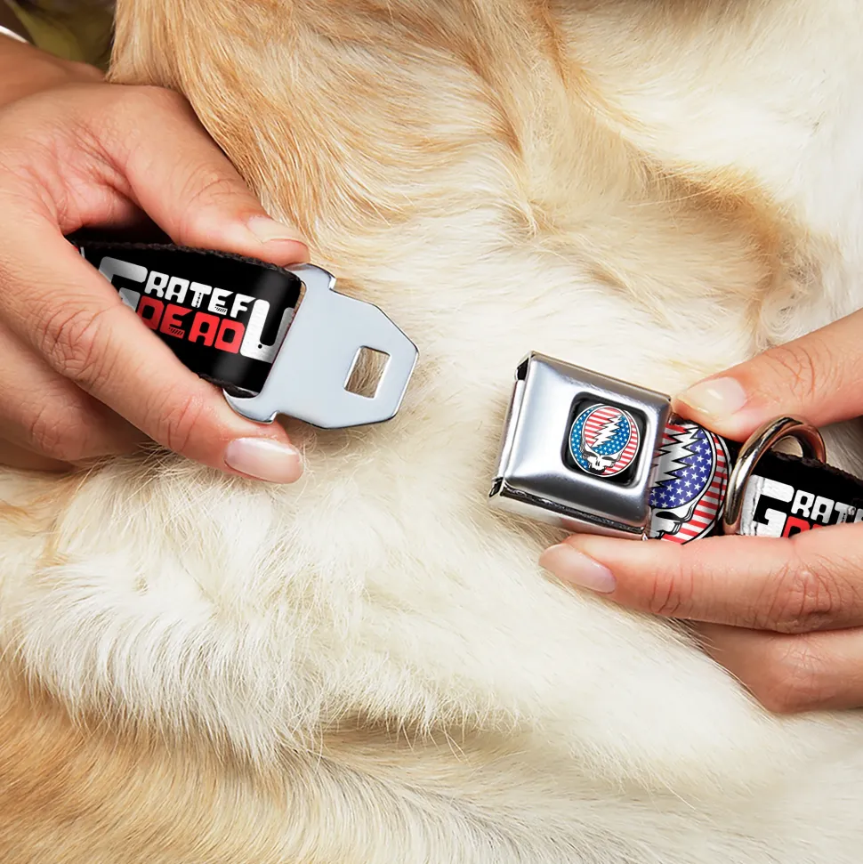 Grateful Dead Steal Your Face Stars and Stripes Logo Full Color Black/White/Red/Blue Seatbelt Buckle Collar – GRATEFUL DEAD Text with Steal Your Face Stars and Stripes Logo Black/White/Red/Blue