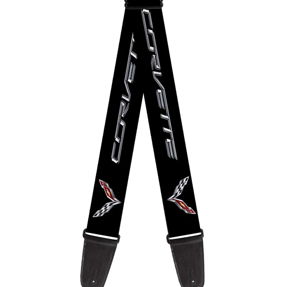 Guitar Strap – CORVETTE C7 Logo Black Silver Red