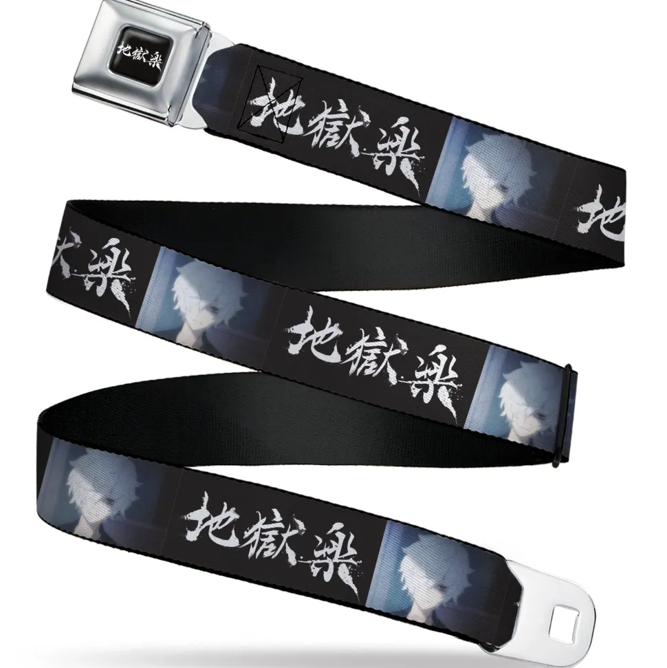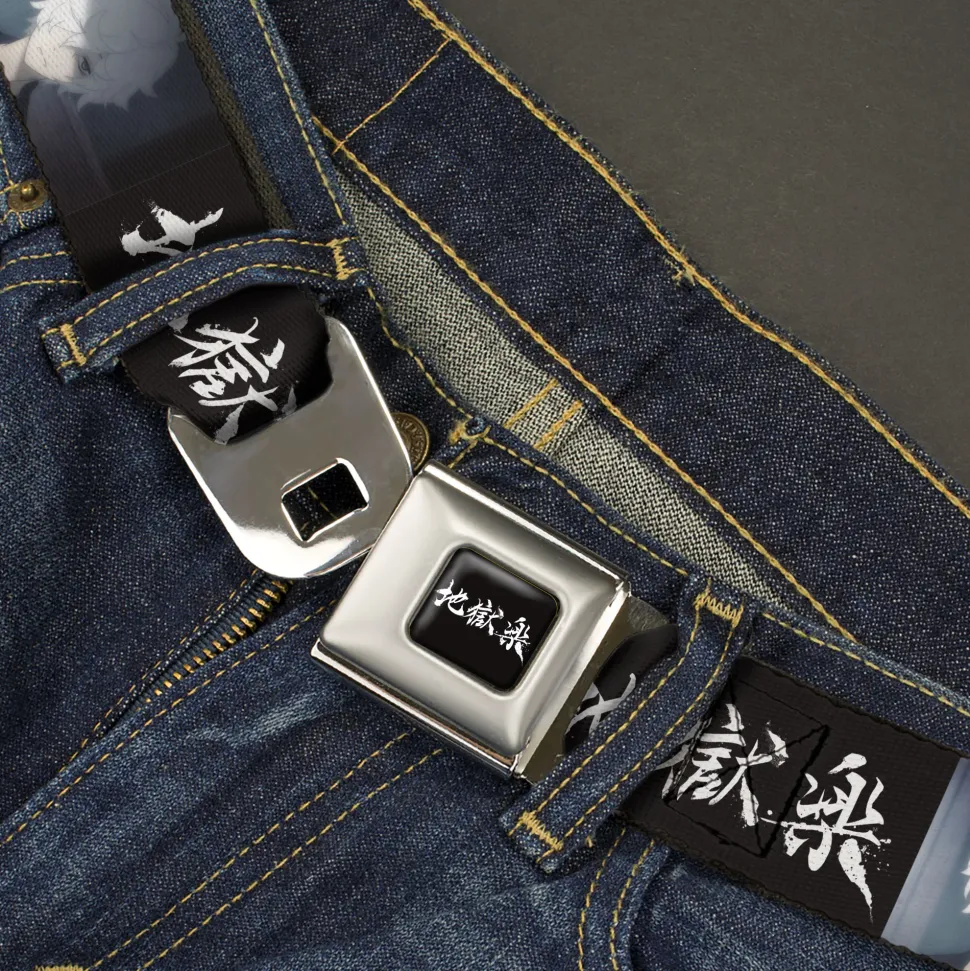 Hell's Paradise Kanji Title Logo Full Color Black/White Seatbelt Belt – Hell's Paradise Kanji Title Logo and Gabimaru Face Black/White Webbing