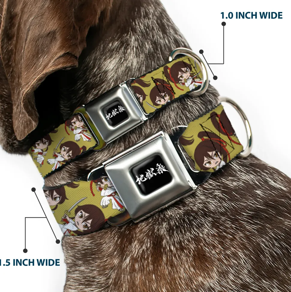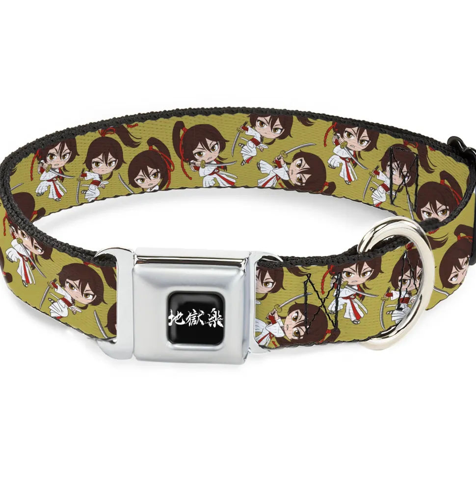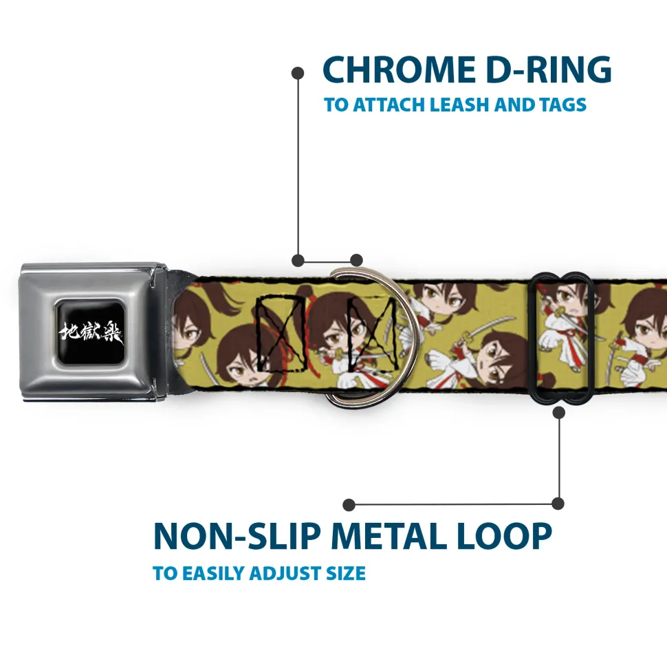 Hell's Paradise Kanji Title Logo Full Color Black/White Seatbelt Buckle Collar – Hell's Paradise Chibi Sagiri Sword Poses Scattered Golden Yellow