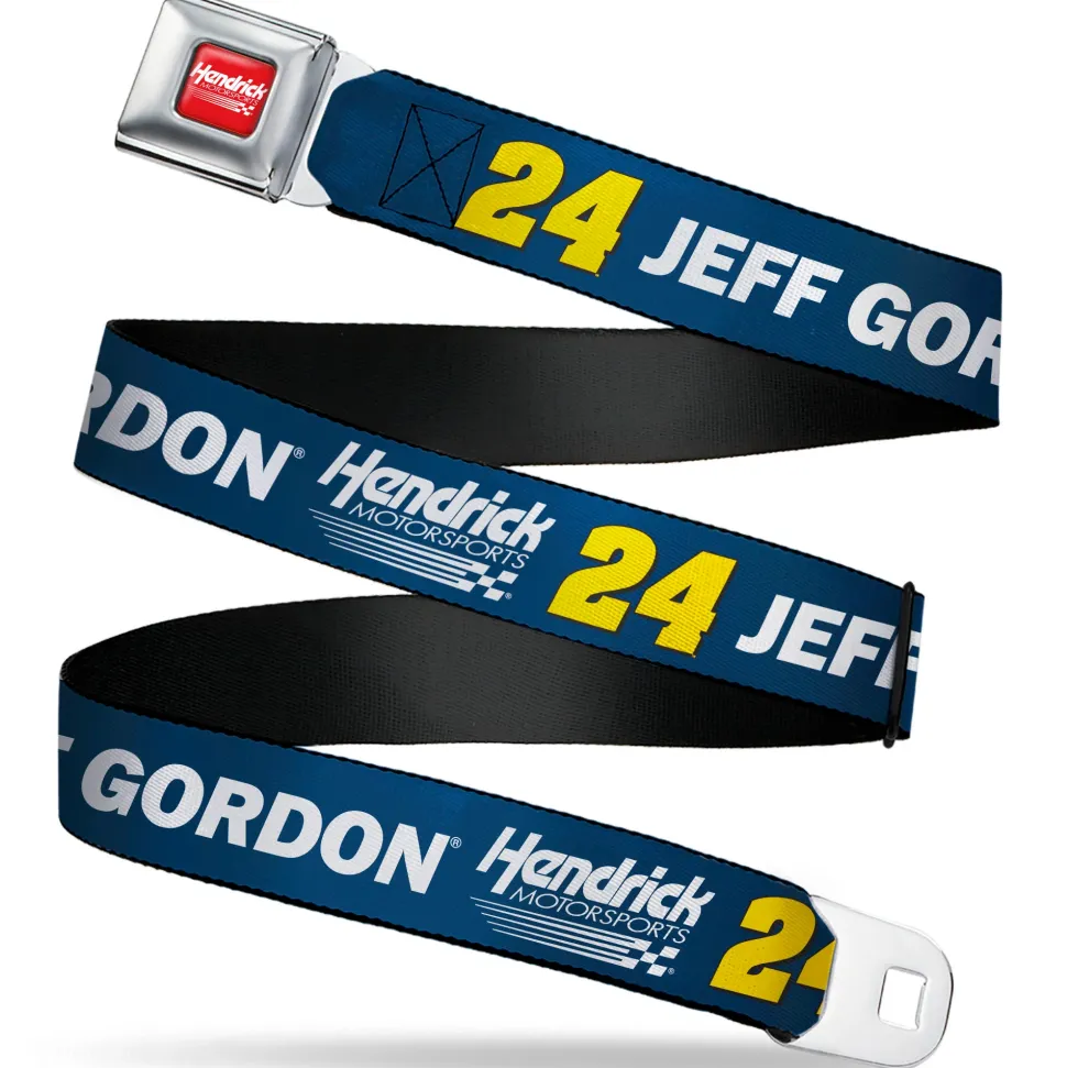 HENDRICK MOTORSPORTS Checker Logo Full Color Red/White Seatbelt Belt – JEFF GORDON #24 Hendrick Motorsports Racing Logo Blue/White/Yellow Webbing