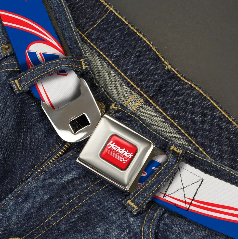 HENDRICK MOTORSPORTS Checker Logo Full Color Red/White Seatbelt Belt – Kyle Larson #5 Car Scheme White/Blue/Red Webbing